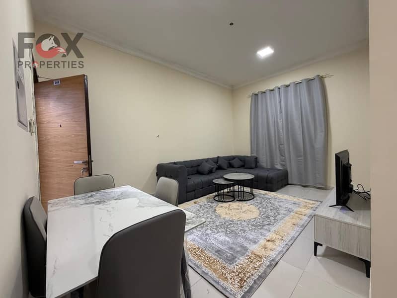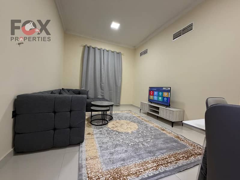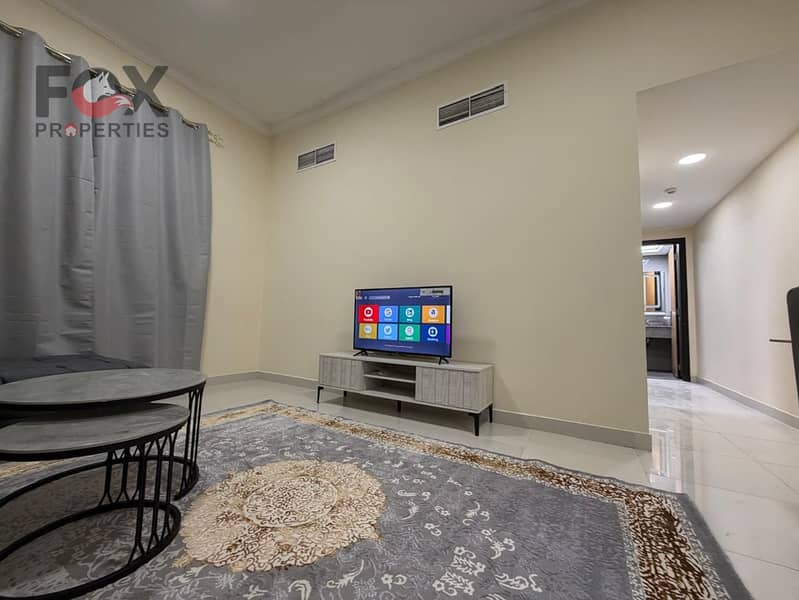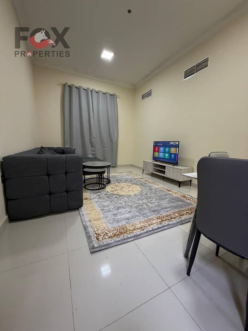 A furnished apartment for the first inhabitant consisting of one room and a living room with a balcony in Al Mowaihat 2, in a lively and distinctive l