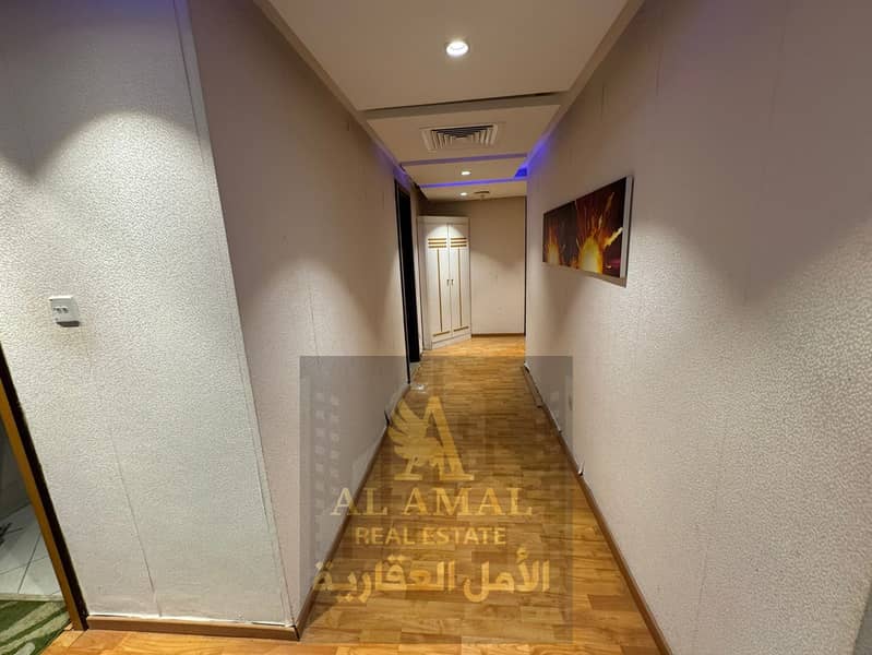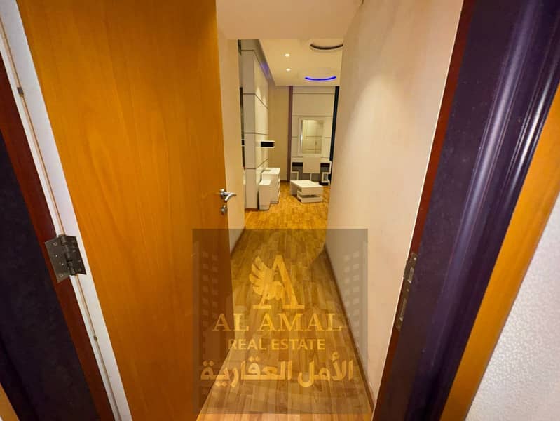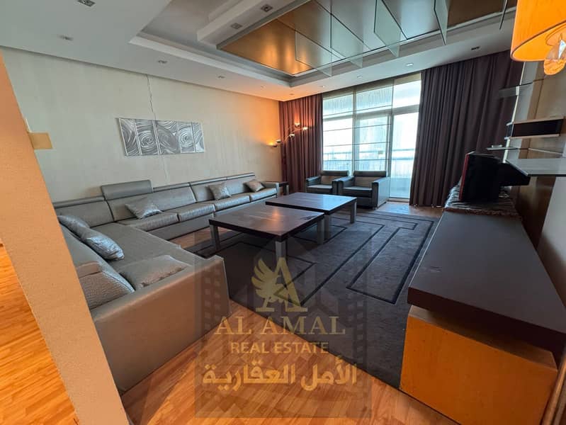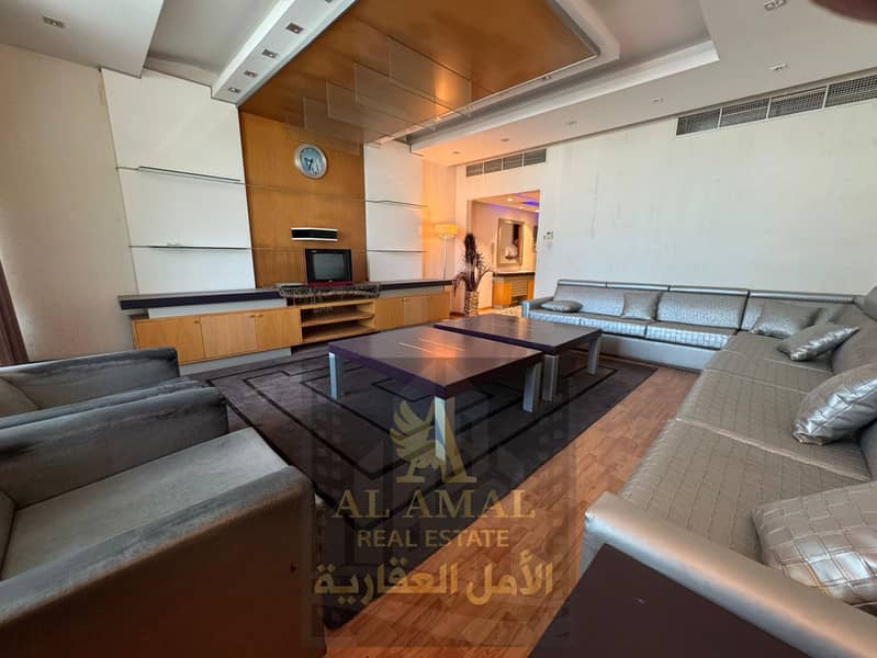 A very large one-bedroom apartment with a living room is available for annual rent, fully furnished, in Al Rashidiya 1 – Horizon Towers.
