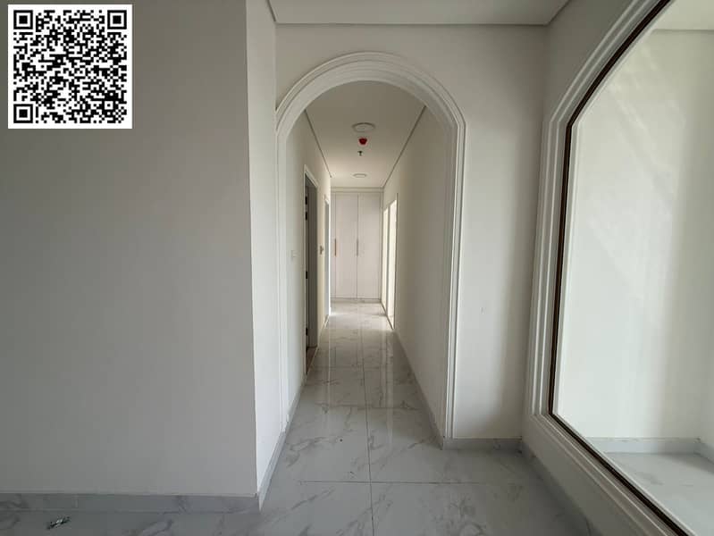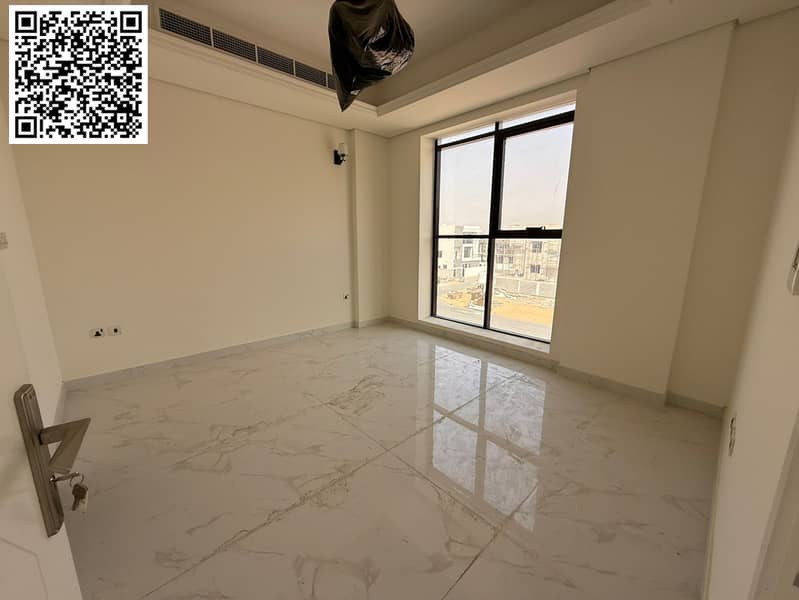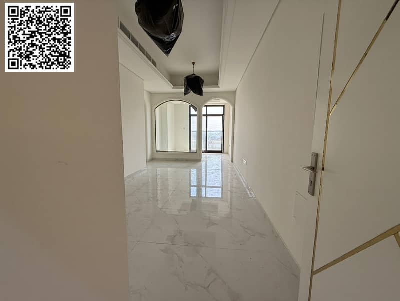 Brand new 3-bedroom apartment with living room and majlis in Al Tallah 2, Ajman. Features include 3 bathrooms, balcony, central air conditioning, swim