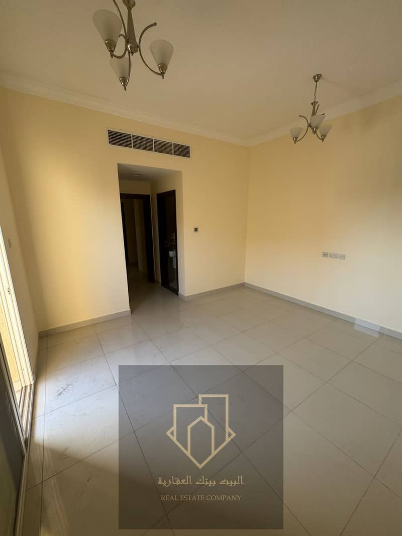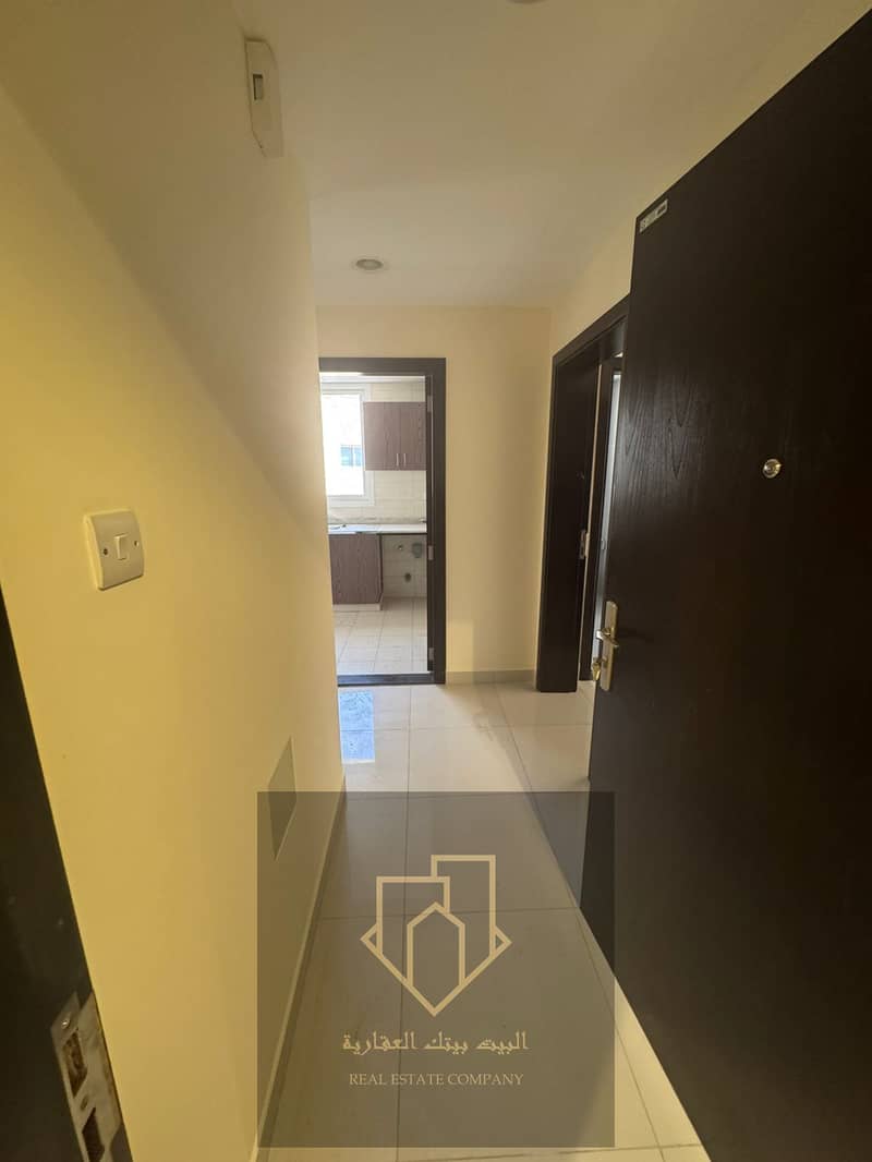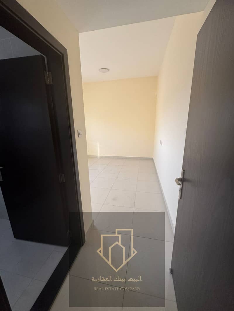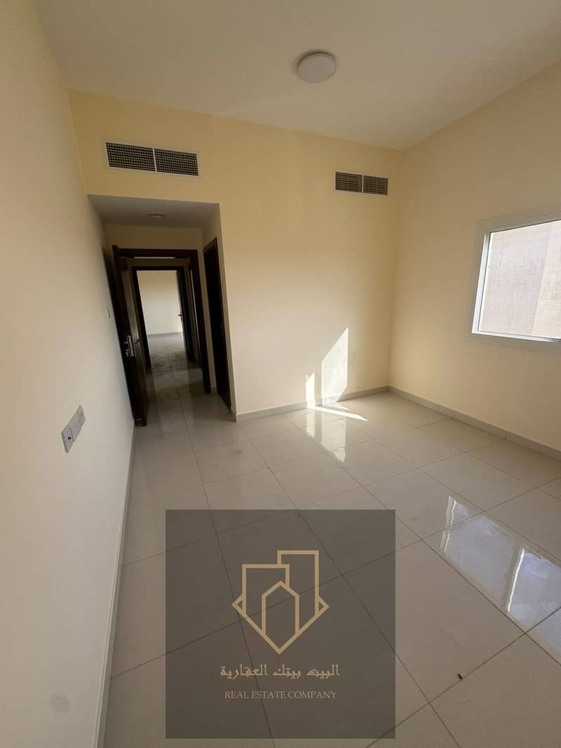 Brand-new first-occupant apartment in Al Rawda 1: 1 bedroom, living room with closed lounge, 2 bathrooms, balcony, spacious, 4-installment payment, security cheque.