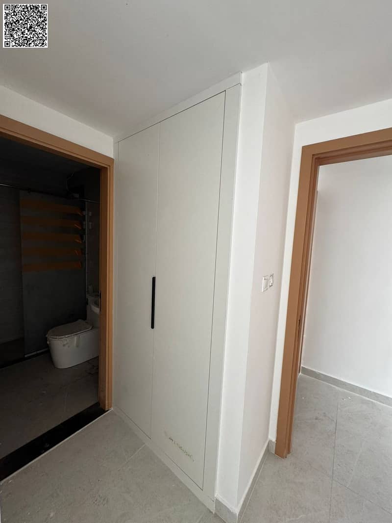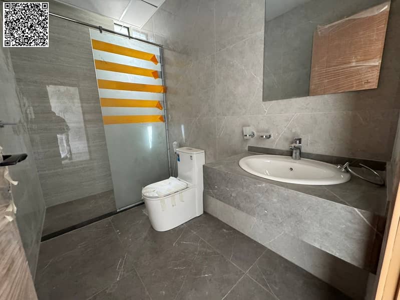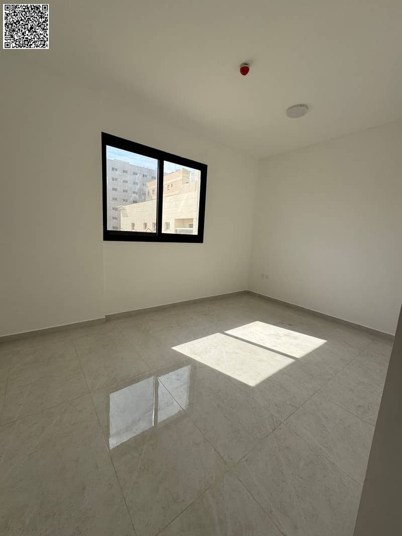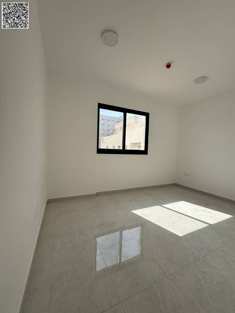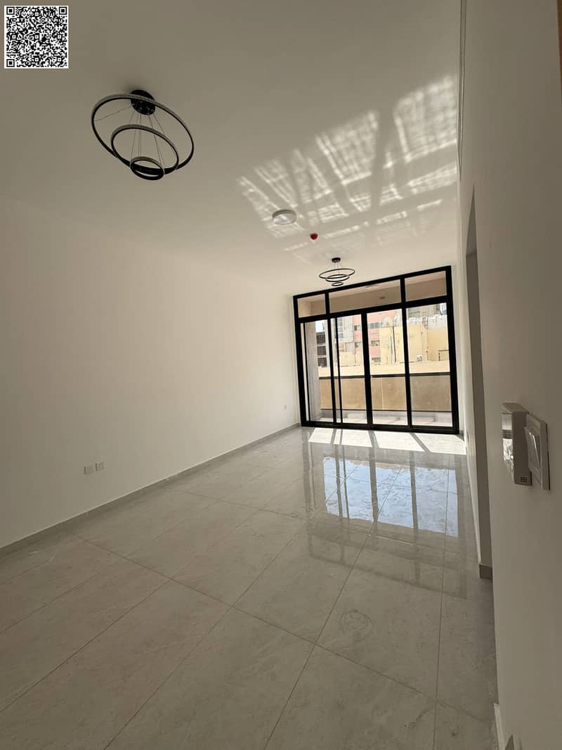 Brand-new first-tenant building in Al Hamidiya. Beautiful 1BR + hall, master bedroom, built-in wardrobes, central AC, balcony, 2 baths, hotel-style fi
