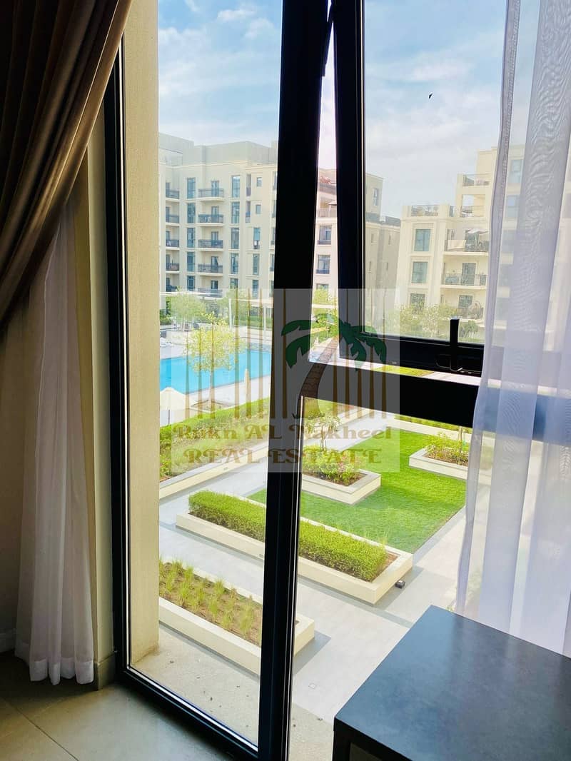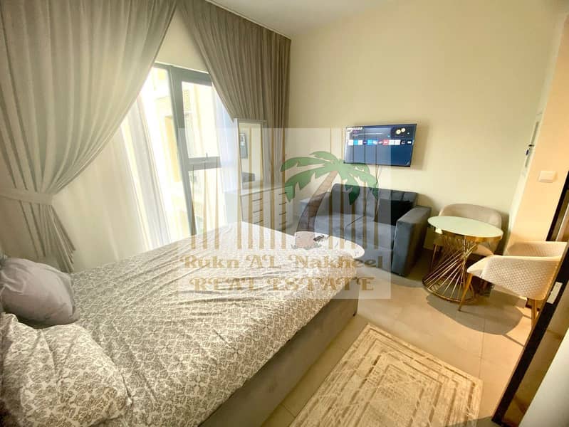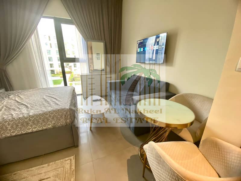 Cheapest | Fully furnished monthly gym pool parking free studio open view ready to move easy access to dubai in good location for more details contact