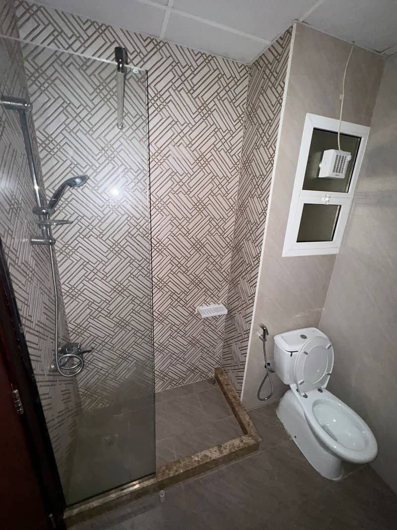For rent in Al Jurf 3, Ajman: 1BR + hall, 2 bathrooms, built-in wardrobes, luxury finishing, first tenant, prime location near services.