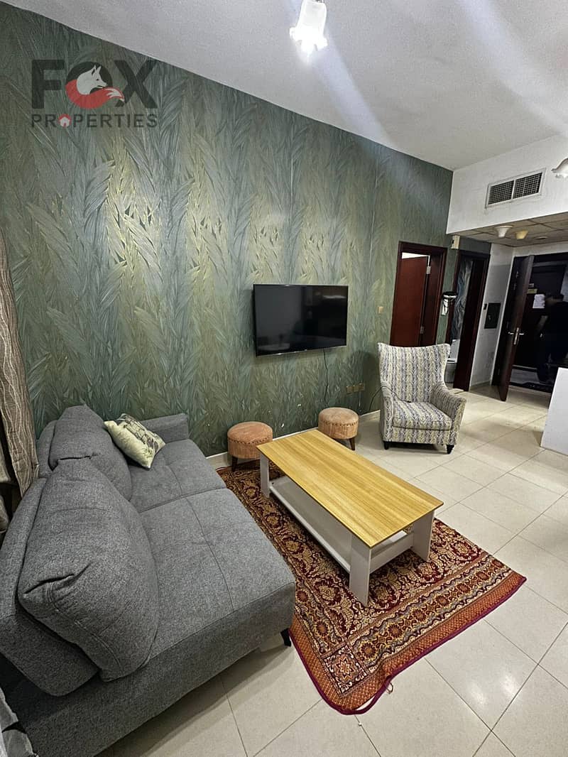 Furnished 1BR apartment for rent in City Tower Al Nuaimiya 3 Ajman | 2 baths, balcony, parking, AED 34,000