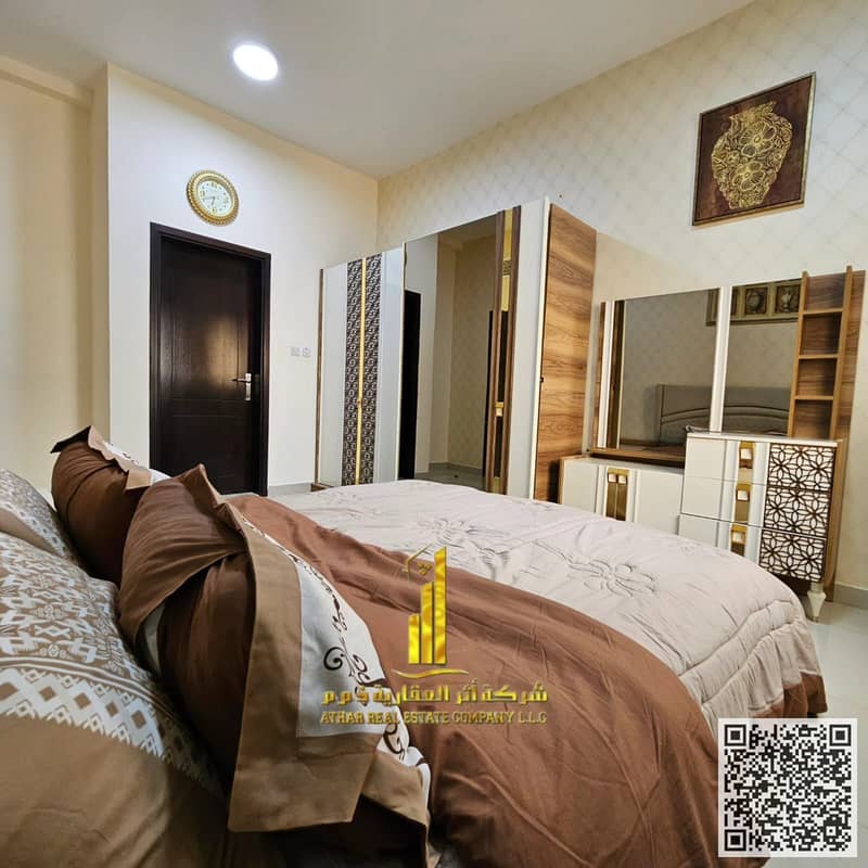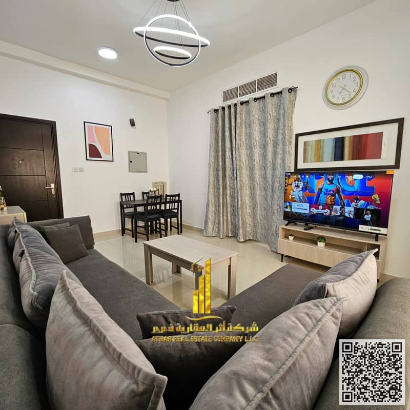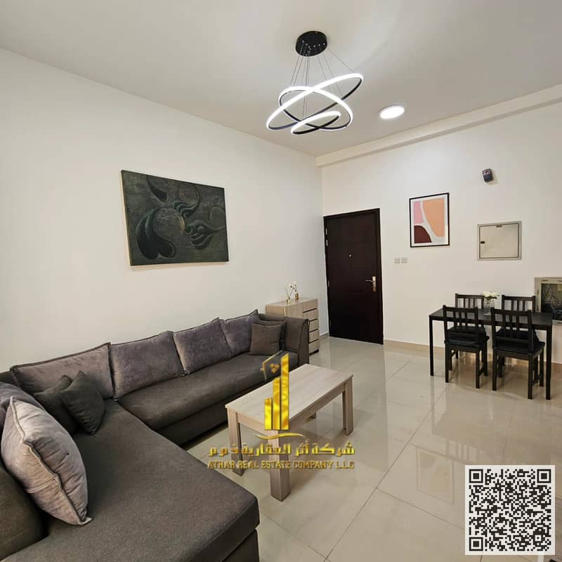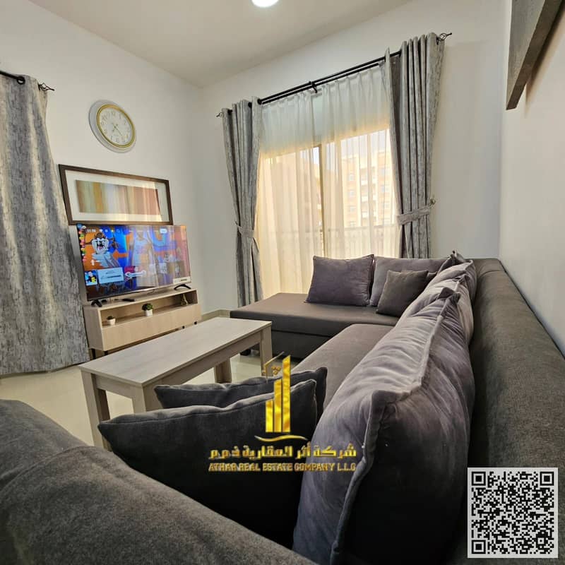 One-bedroom apartment, fully furnished with elegant and tidy furniture, available for monthly rent in Al-Jarf 2, next to Al-Aqsa School