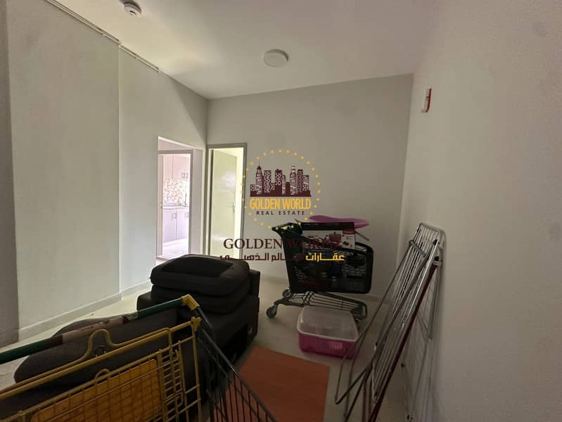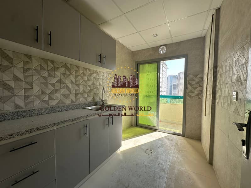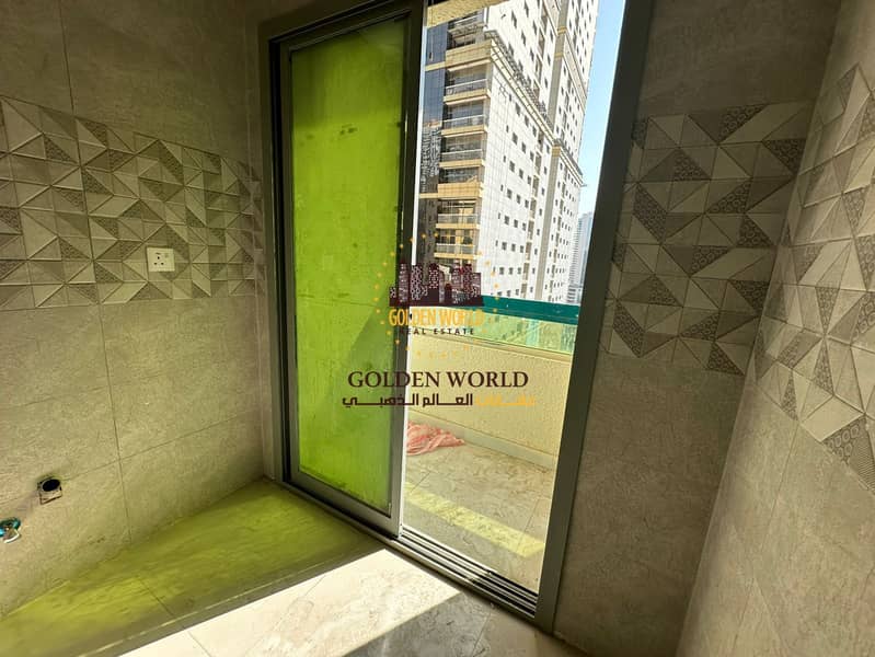 Small 1BR apartment with balcony, first tenant after renovation, strategic location, split AC, only AED 35,000 yearly.