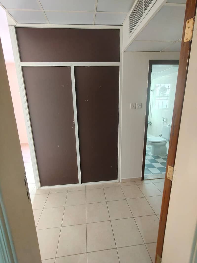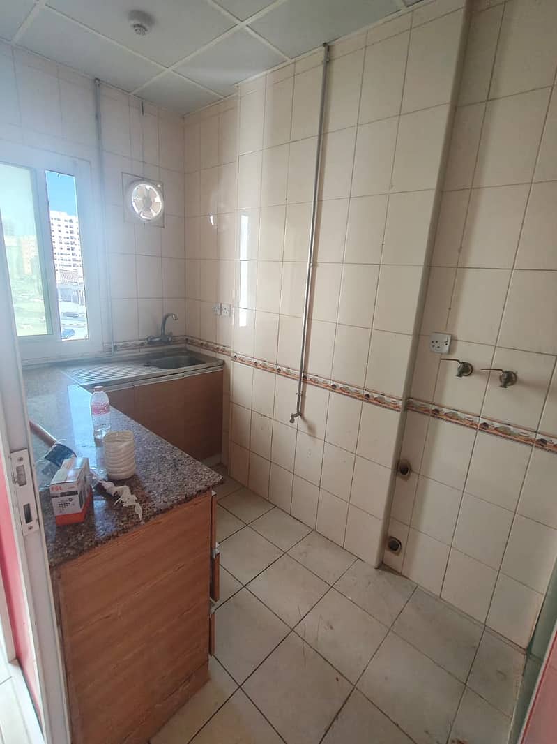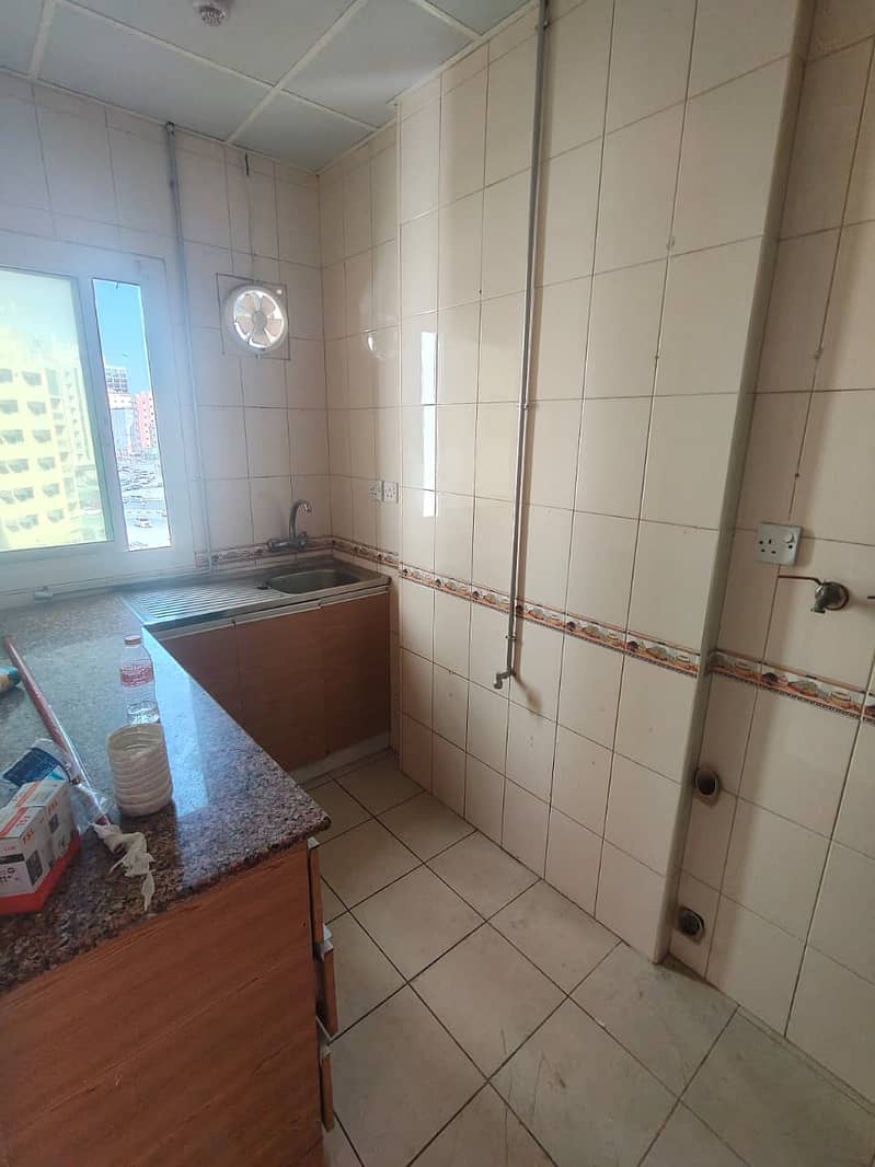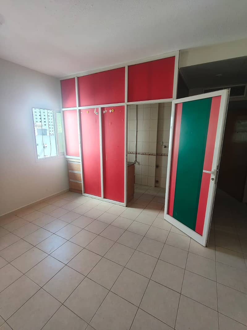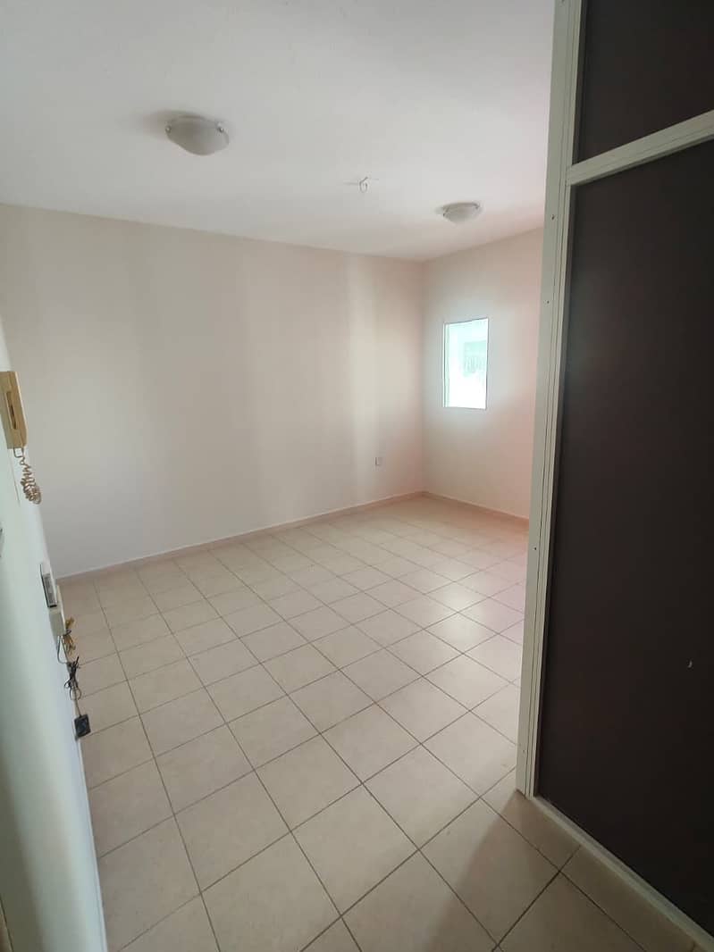 Spacious studio in Al Majarah, central AC, separate kitchen, 21K AED, 6 cheques, family-friendly, ready to move.