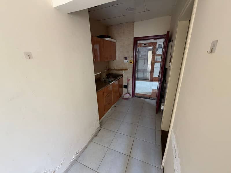 Studio apartment for annual rent, ground floor, very spacious, in Al Rashidiya, near Ladies Park. Minutes from Ajman Corniche. Semi-separate kitchen.