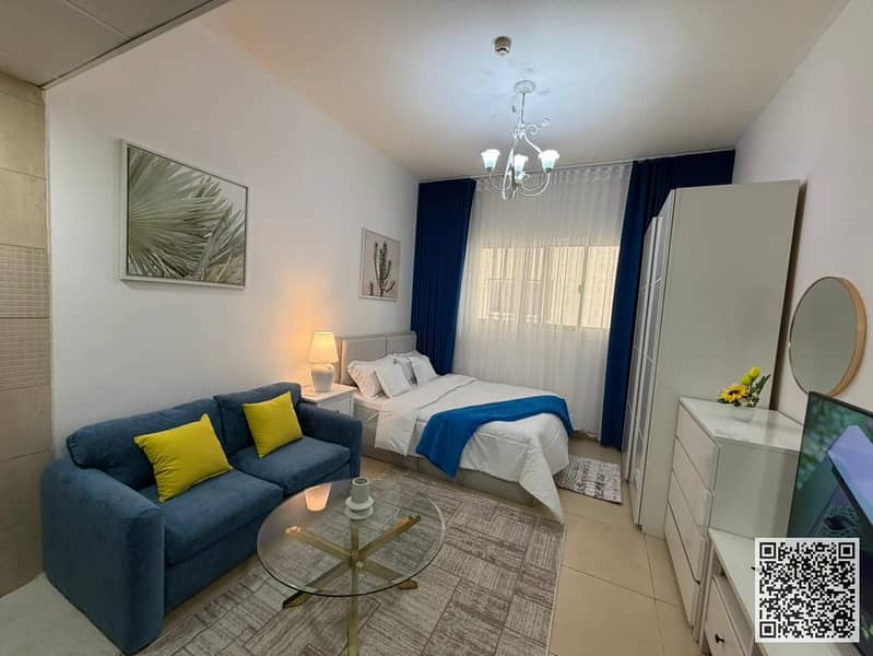 Top-Class! Brand-New Fully Furnished Studio for Monthly Rent in Al Yasmeen Towers – Al Jurf 2 Spacious studio with elegant brand-new furnitu