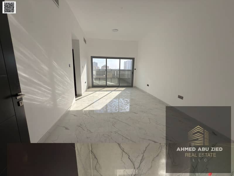 1BHK for rent in Ajman, master bedroom with wardrobes, spacious hall, balcony, central AC, open view, 1 month free, free maintenance