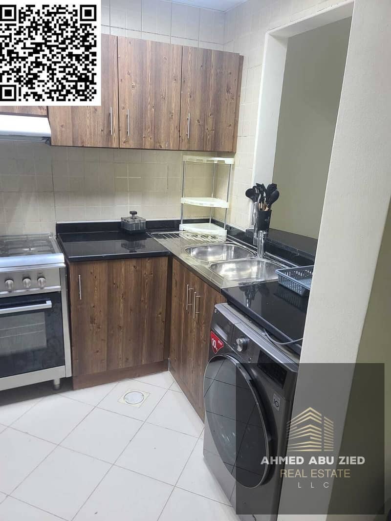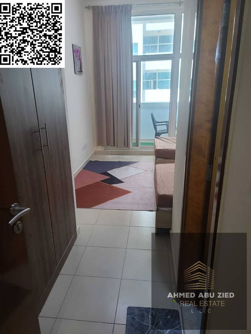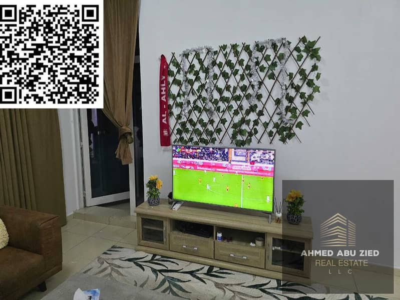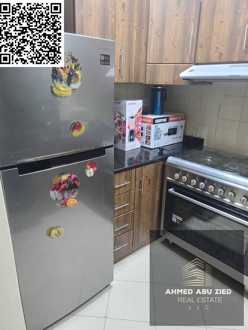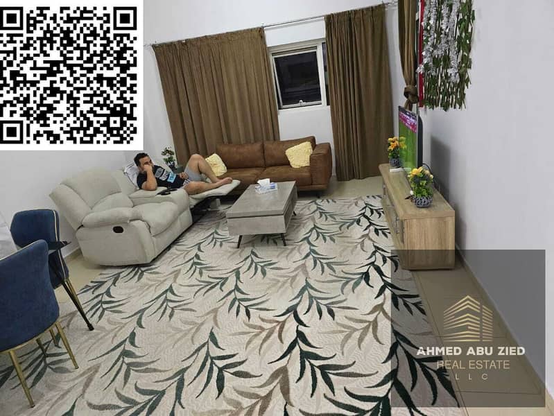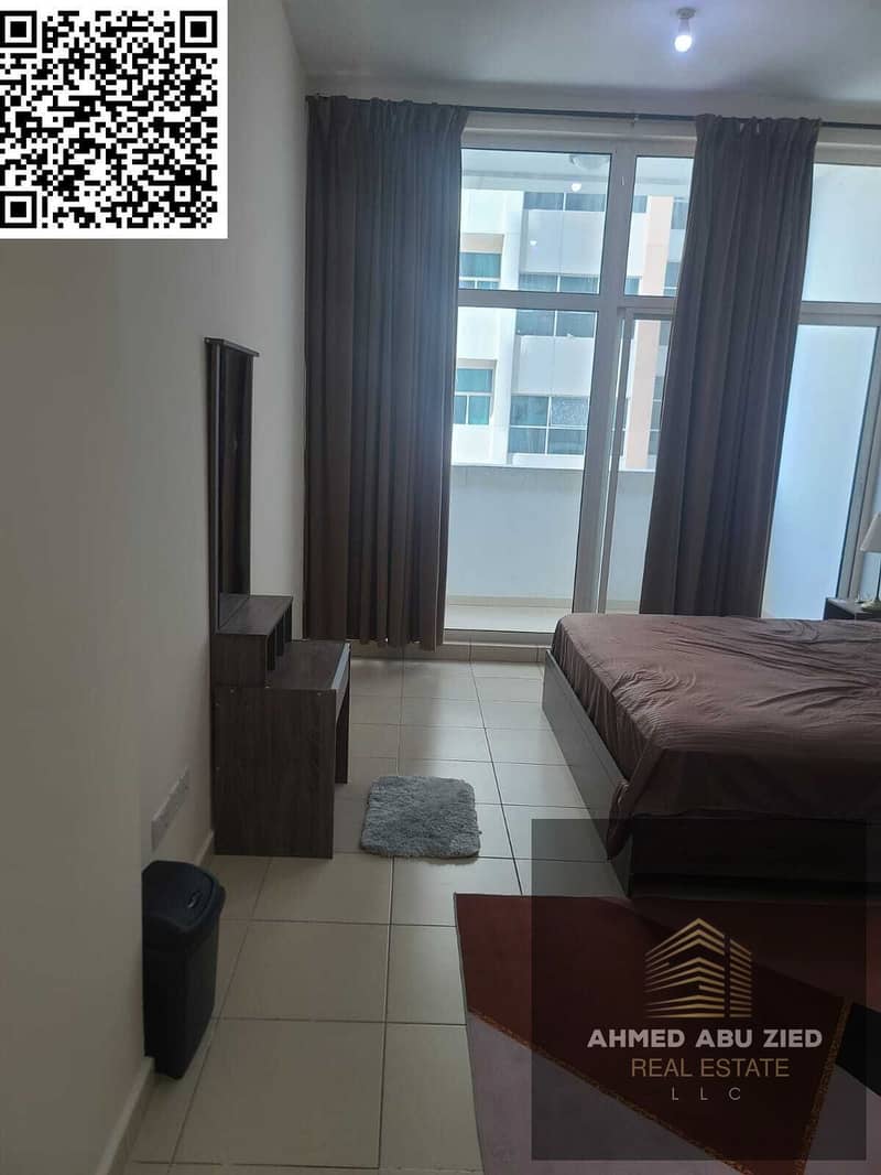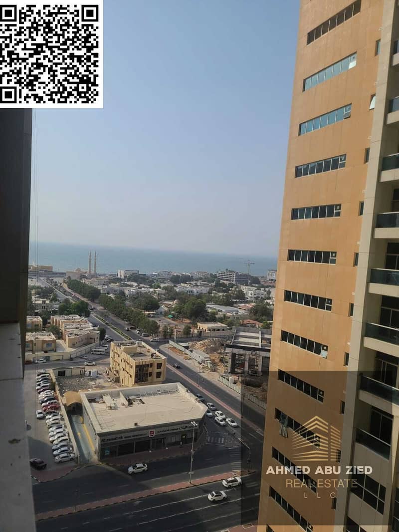2BR furnished apartment for yearly rent in Ajman One Towers, prime location above restaurants and near the Corniche, AED 54,000 in 4 payments