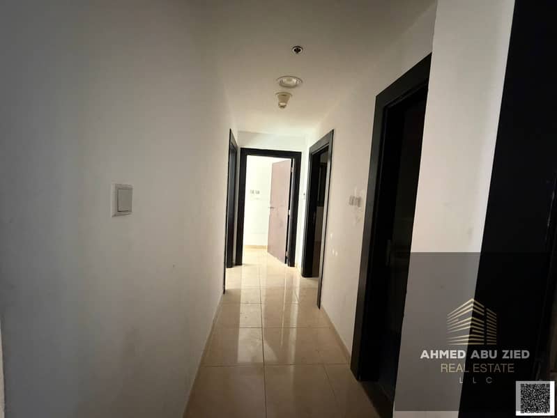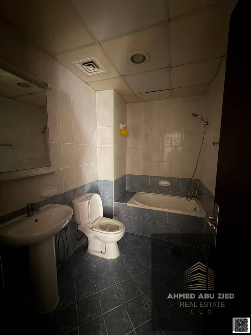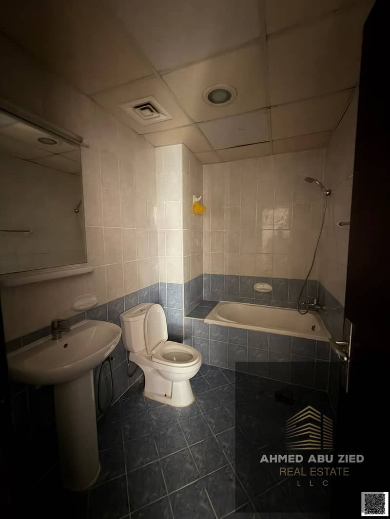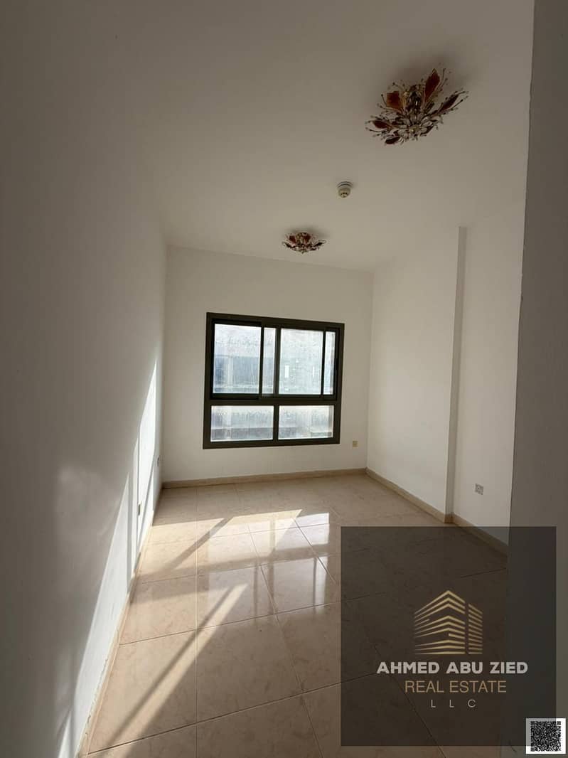 3BR apartment in Ajman, 3 baths, spacious hall, equipped kitchen, balcony, central AC, free maintenance, quiet & clean, on MBZ Road