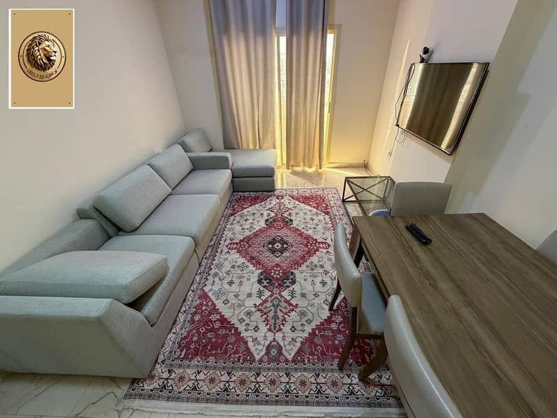 A great opportunity for monthly accommodation in Al Rawda 3 – Ajman, an elegant one-bedroom apartment with a living room, fully furnished, located in