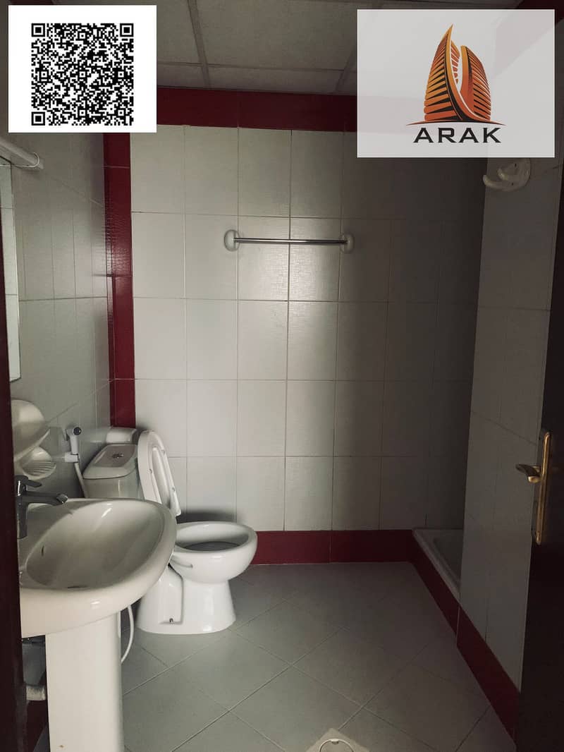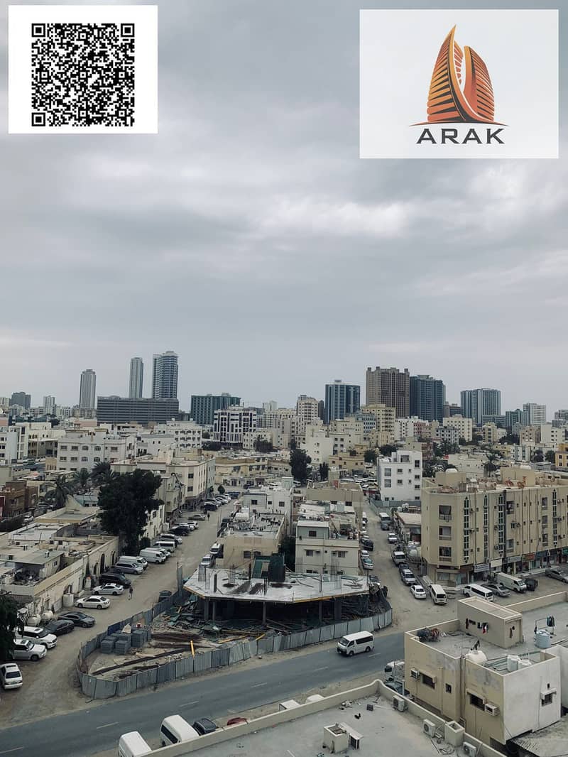 A well-maintained apartment is available for annual rent in Al Bustan, Ajman, located in the same building as Al Shareef Building, in a lively area c