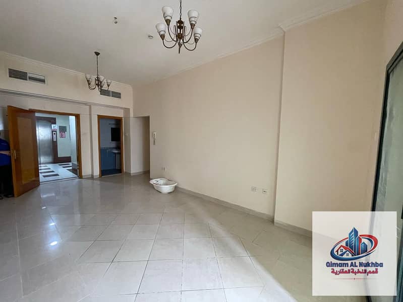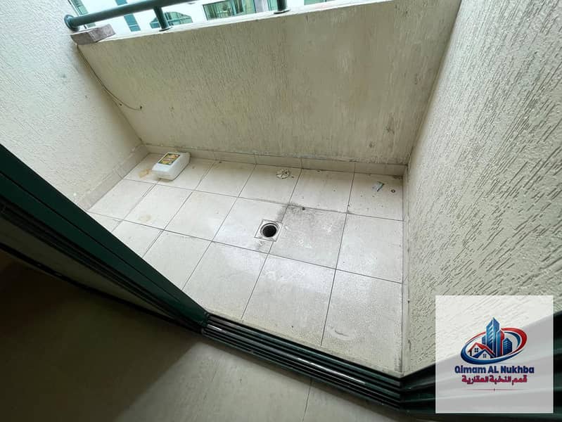 Balcony with open city view – Beautiful and spacious 2-bedroom apartment with a living room in Al Qasimia, Sharjah, featuring an internal privacy hall