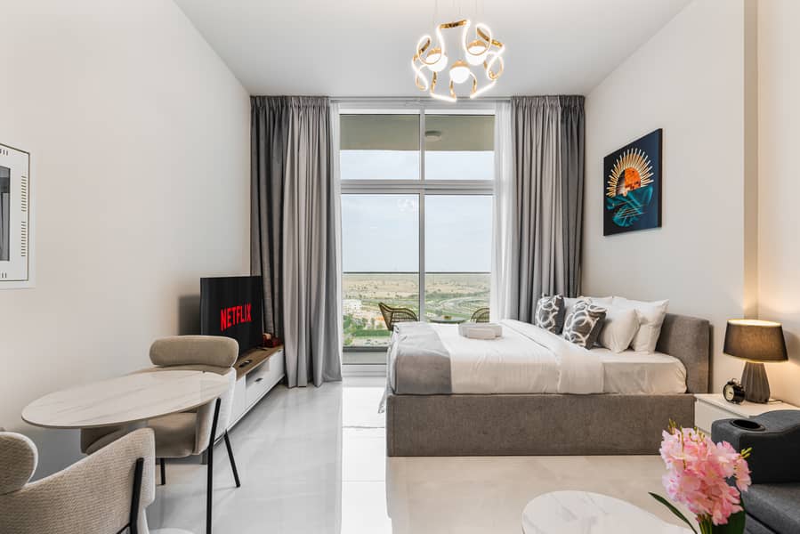 Chic Studio near Dubai Miracle Garden & Expo City | Furnished | Flexible term