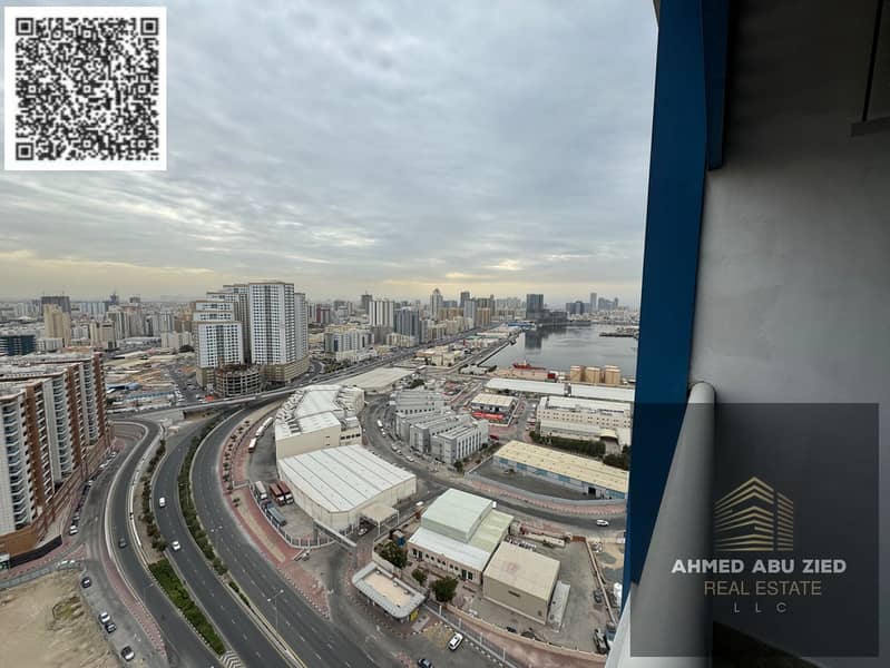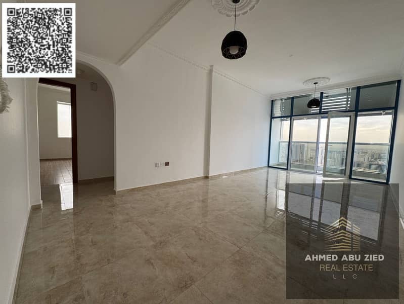 Elegant and beautiful two-bedroom apartment with a living room, two bathrooms, a balcony with an open view, central air conditioning, super deluxe fin