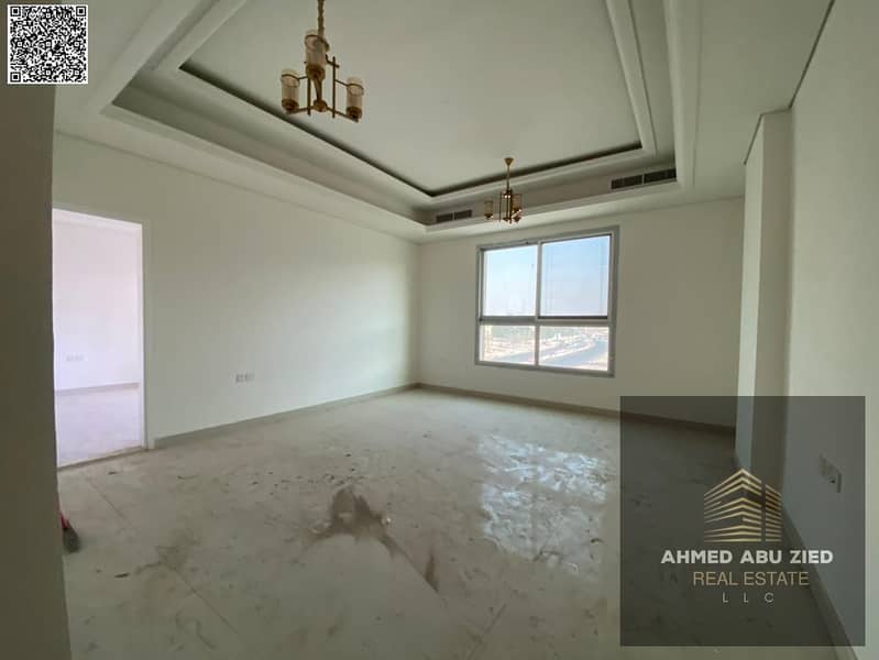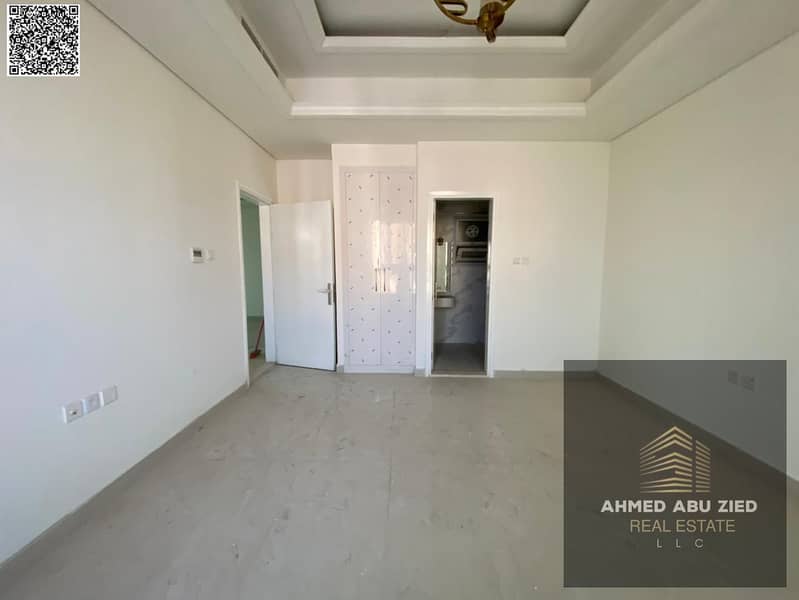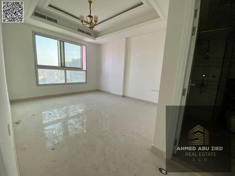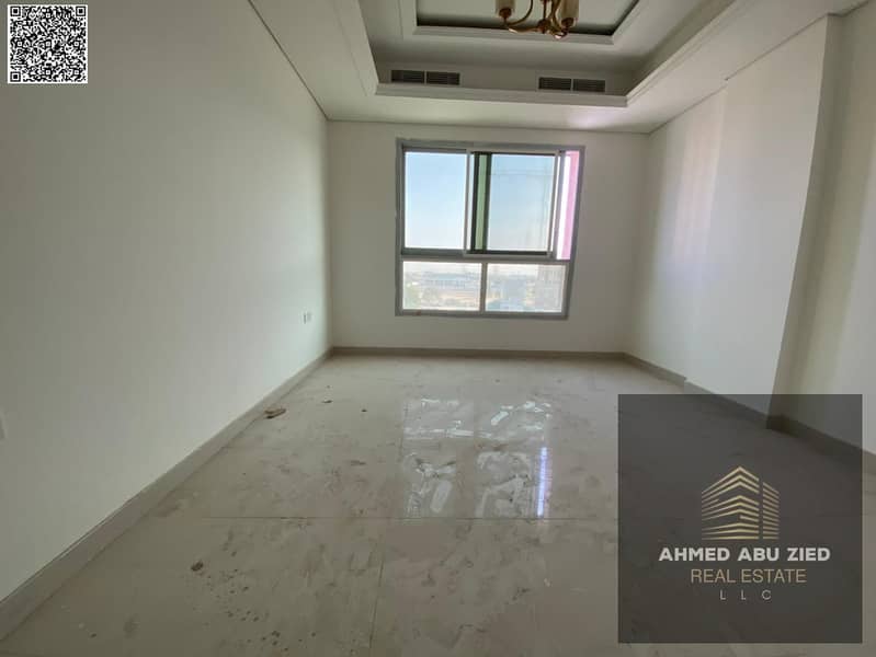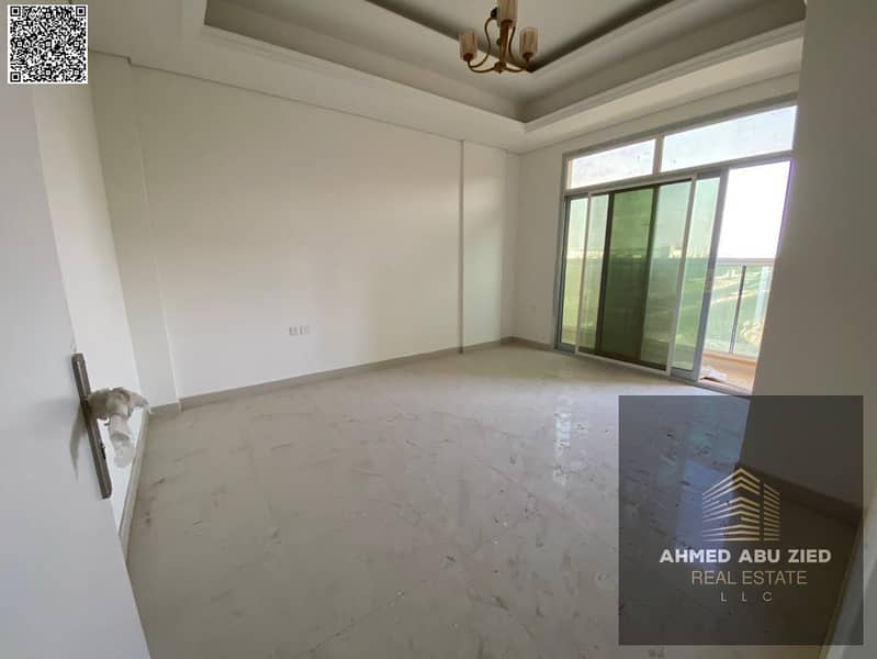 First-tenant 3BR apartment in Al Mowaihat 3, Ajman, annual rent, 1 month free, balcony, central AC, 3 baths, built-in wardrobes, easy Dubai & Sharjah