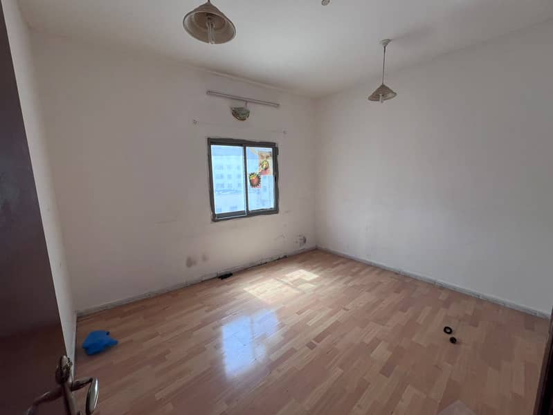 For annual rent in Ajman: 1 bedroom and living room, second row from the Corniche, balcony with a nice view, spacious layout, central AC, AED 23,000 i