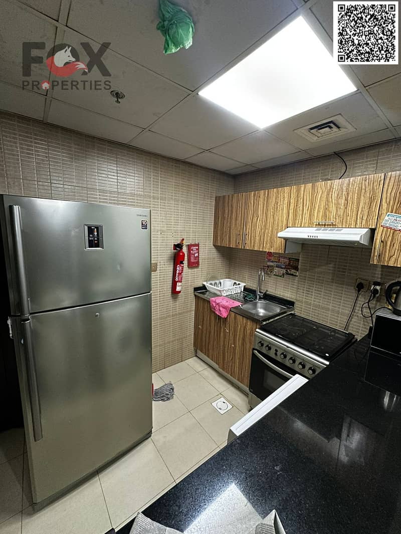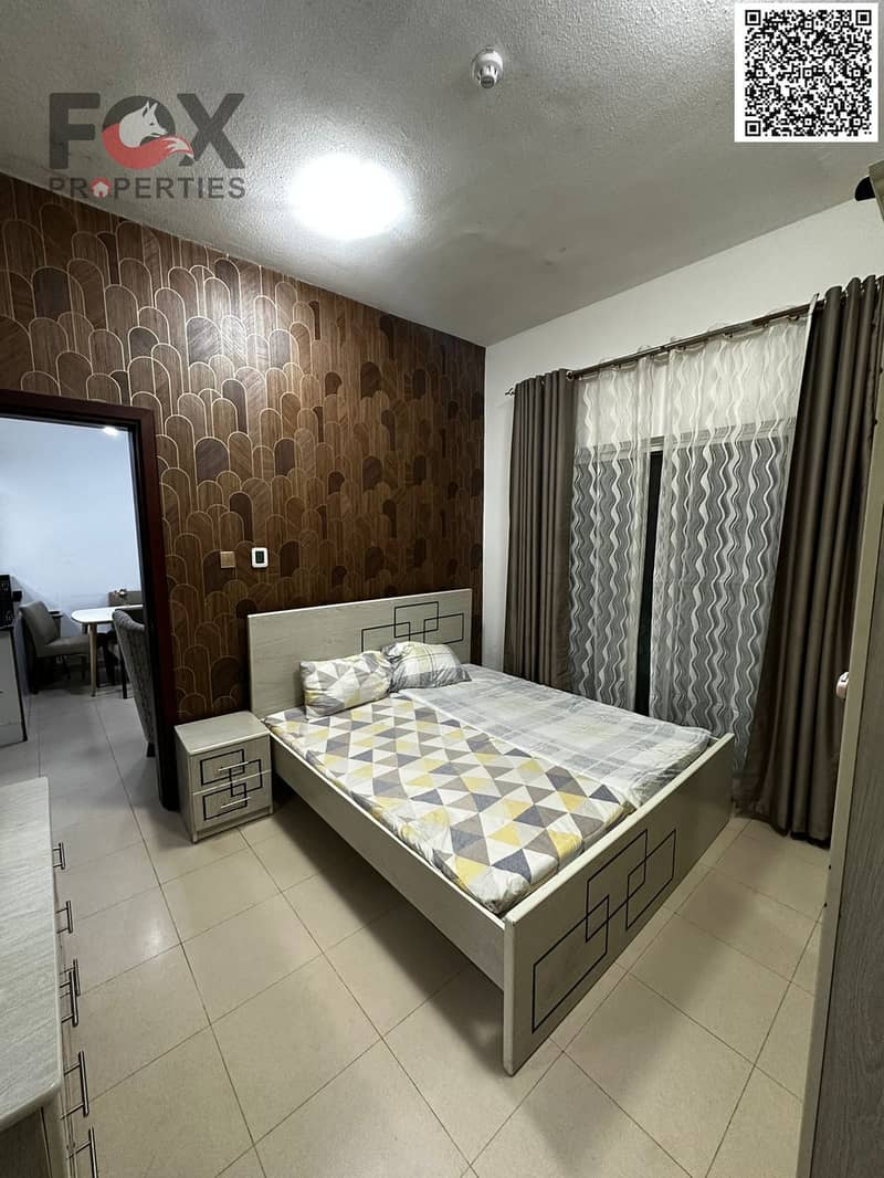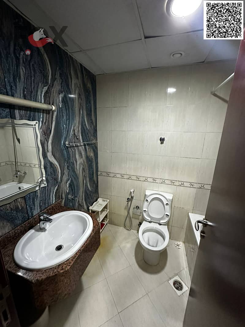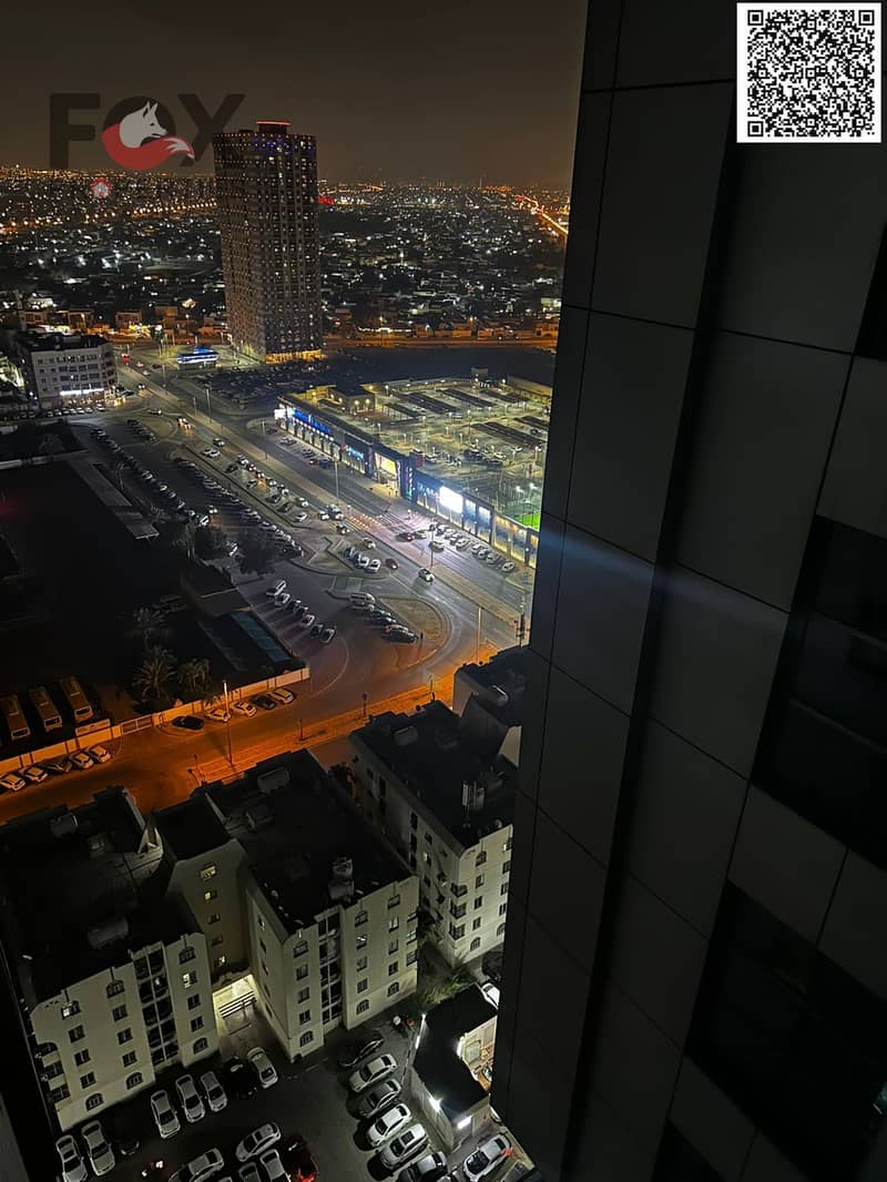 For annual rent in Ajman, a furnished one-bedroom apartment with a living room, balcony, and two bathrooms in City Towers. Prime location close to all