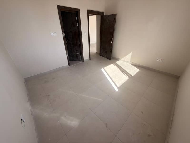 For annual rent in Al Jurf 3, Ajman, first occupancy, in a prime location behind the Chinese market. Two bedrooms, a living room with a master bedroom
