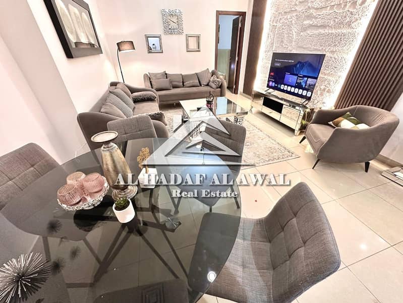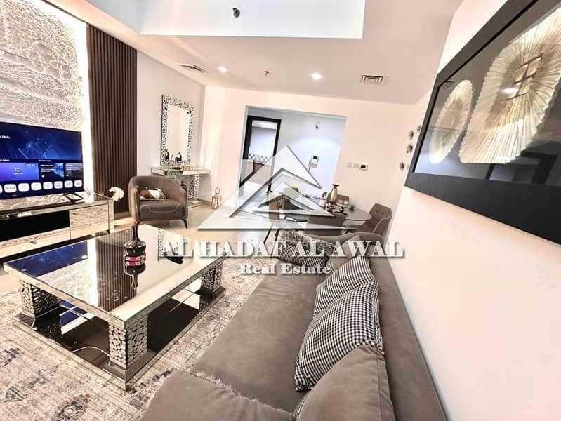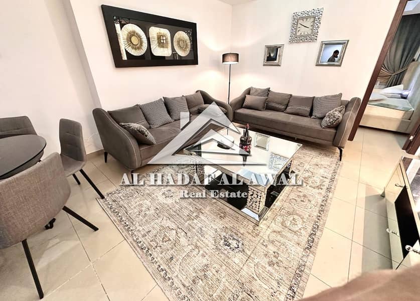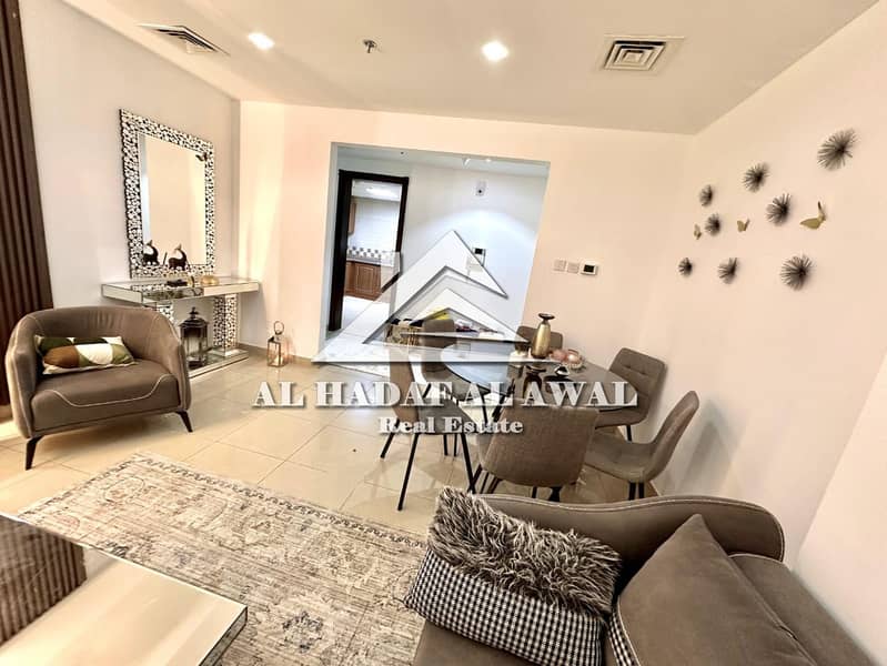 For monthly rent, a 3room and a hall in Al Khan area beach tower with free internet and parking