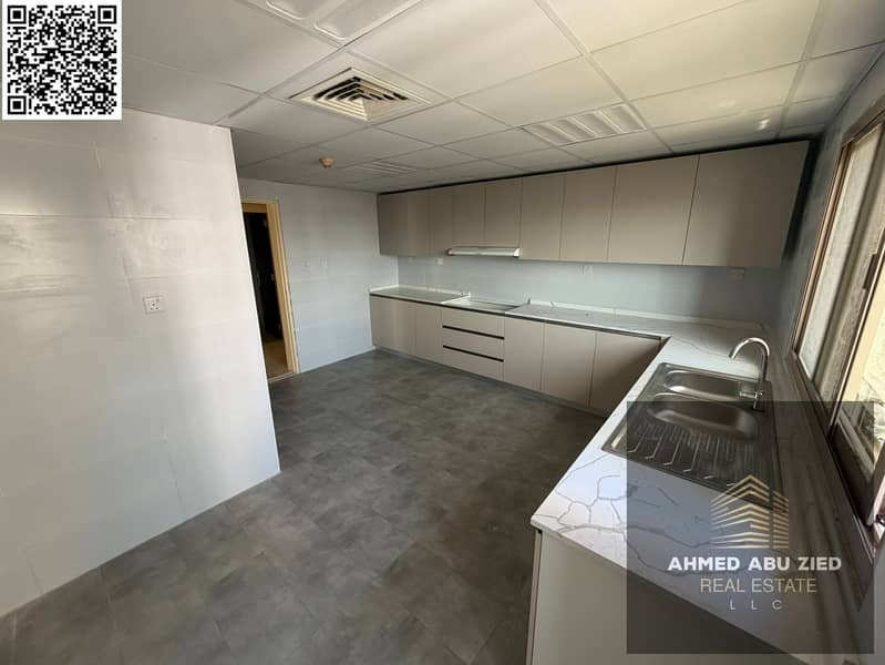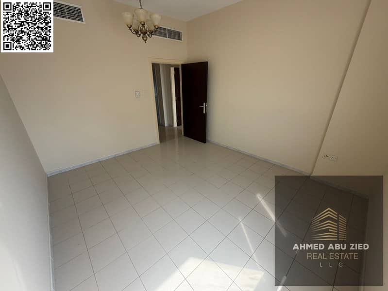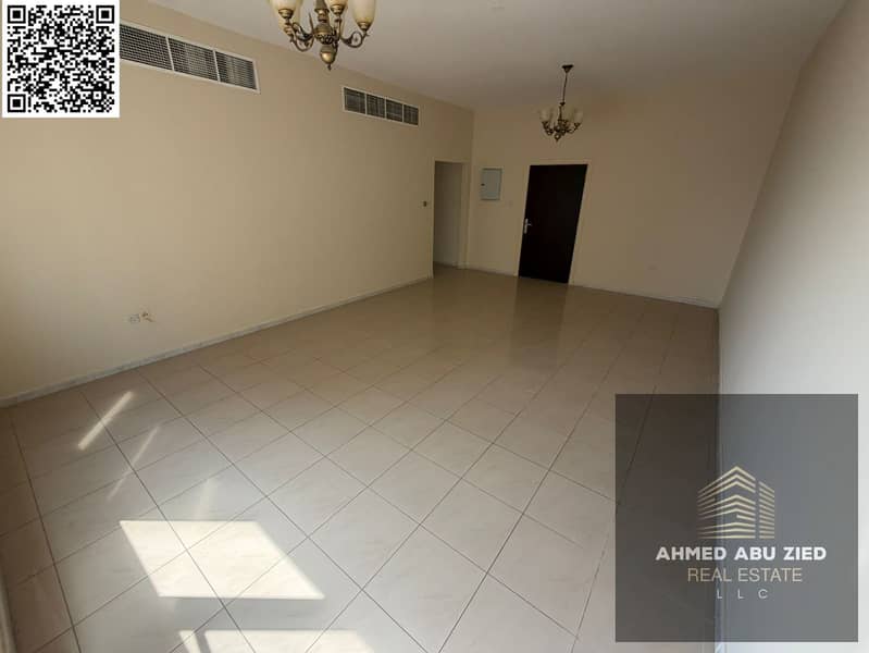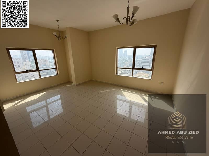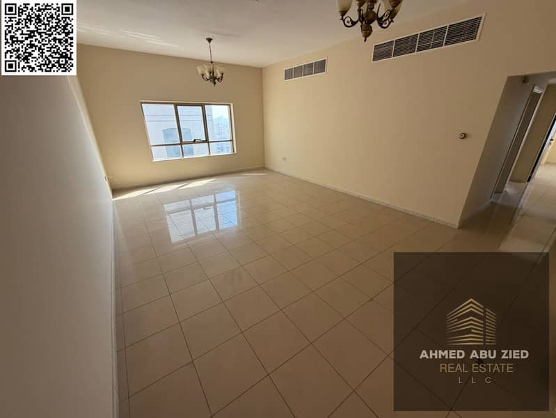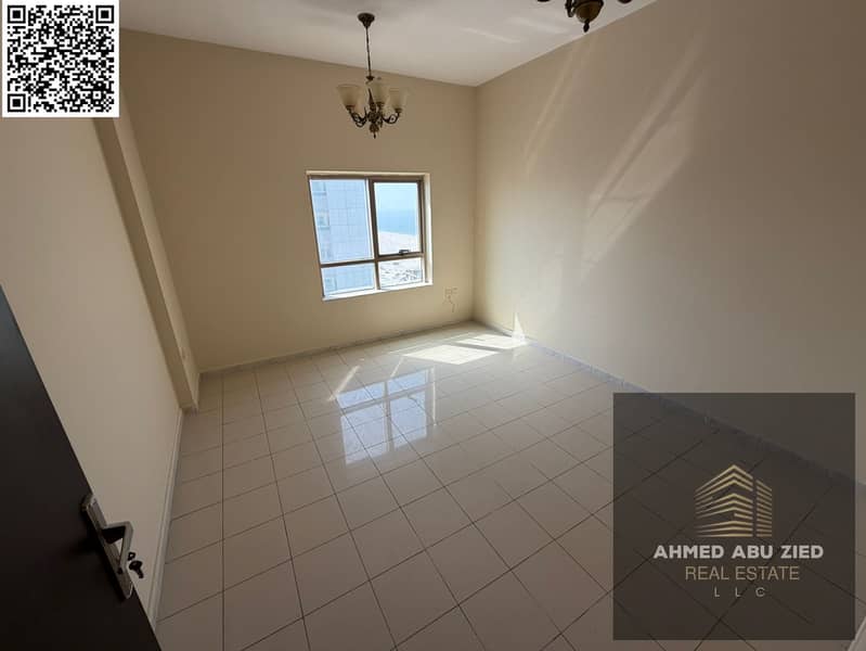 For rent: a two-bedroom apartment in Ajman Corniche, with three bathrooms and two master bedrooms, a balcony with a direct view, a large and bright sp
