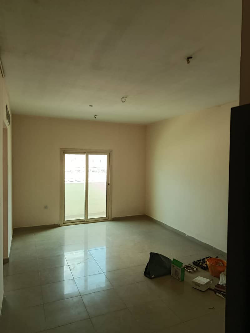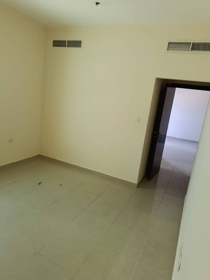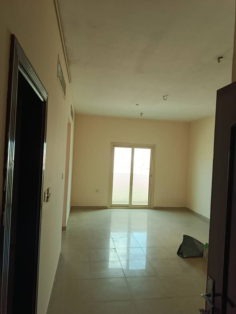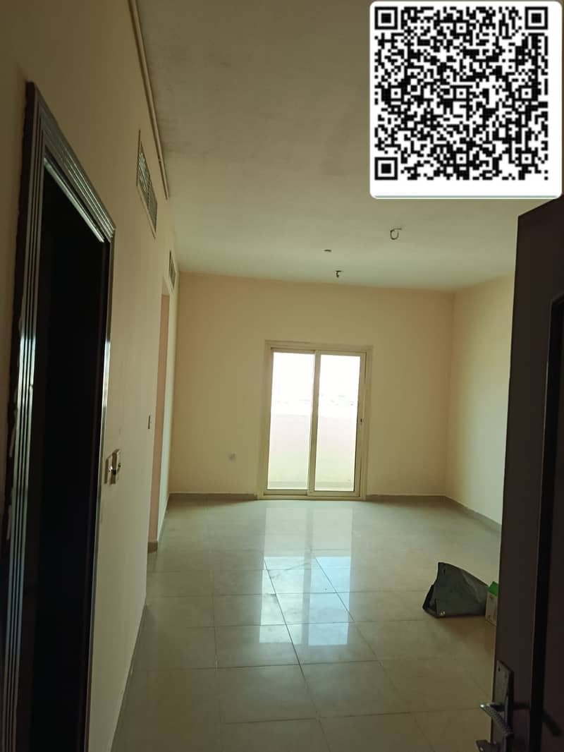 For rent in Al Khan: 1BR master + hall, 2 baths, balcony, central AC, spacious layout, clean building near Corniche & services.
