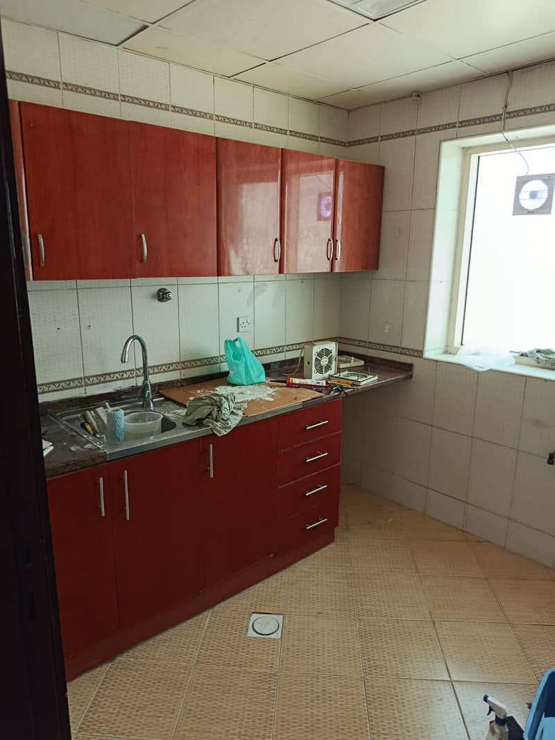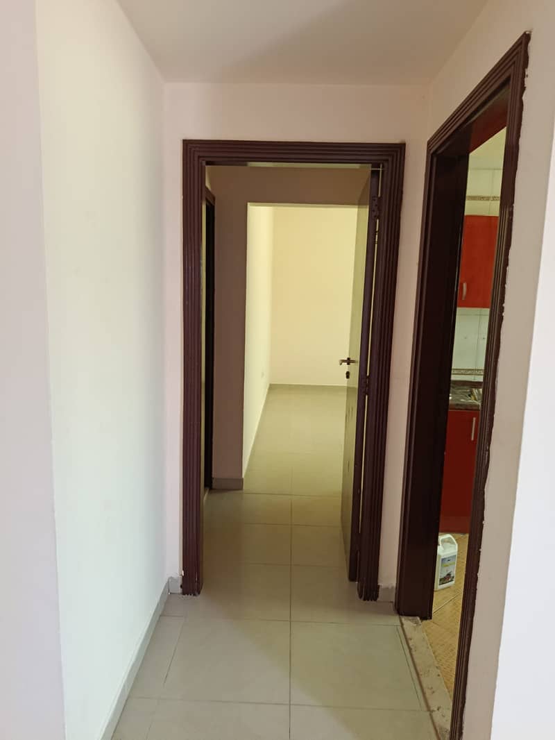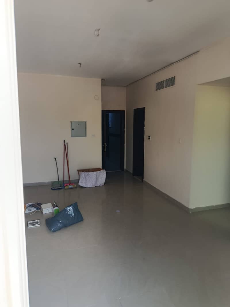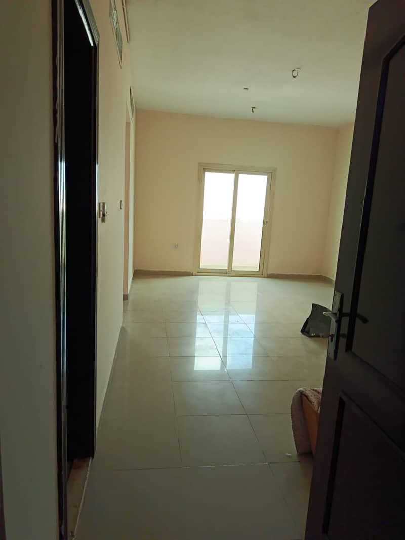 For rent in Al Khan: 1BR master + hall, 2 baths, balcony, central AC, spacious layout, clean building near Corniche & services.