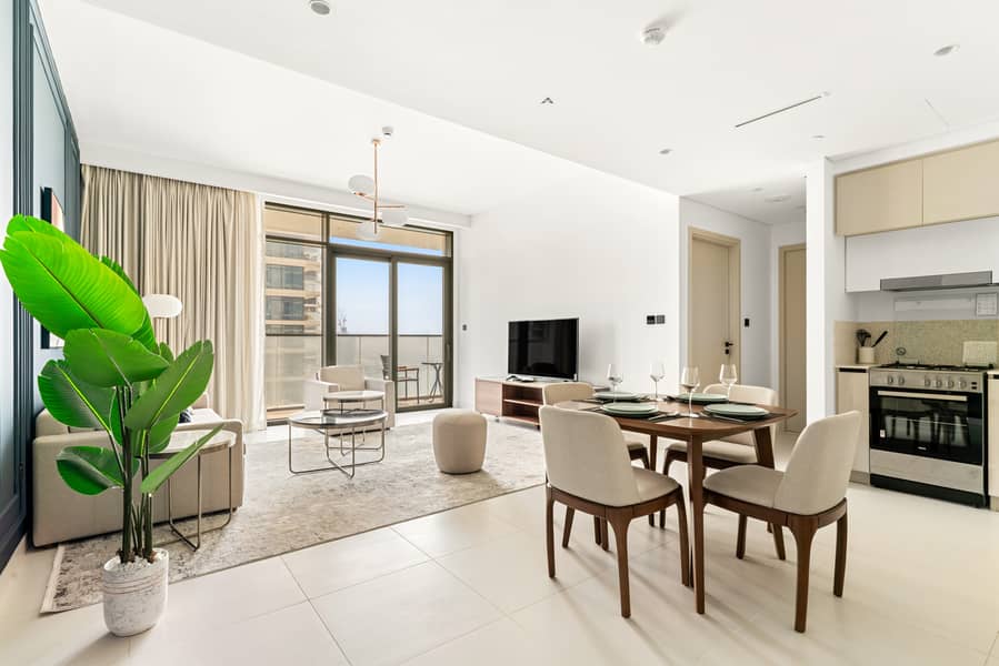 Furnished 1BR in Emaar Beachfront | Sea View | Flexible Yearly Lease