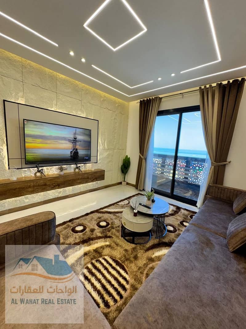 Furnished 2-Bedroom Apartment for Monthly Rent – Ajman Walk Full Sea View First Occupancy Lowara 1 – Star 1 Tower Opposite