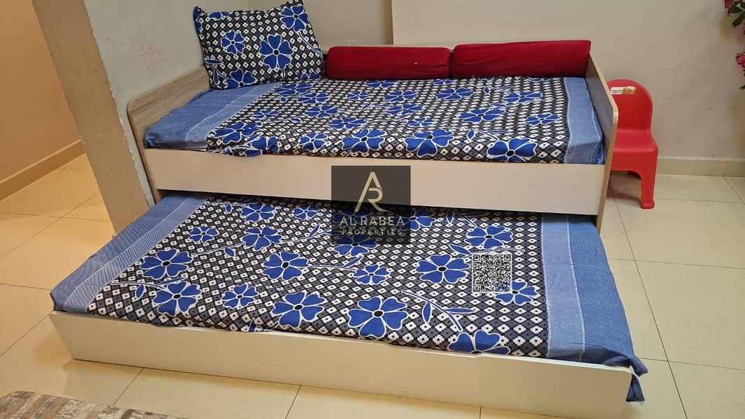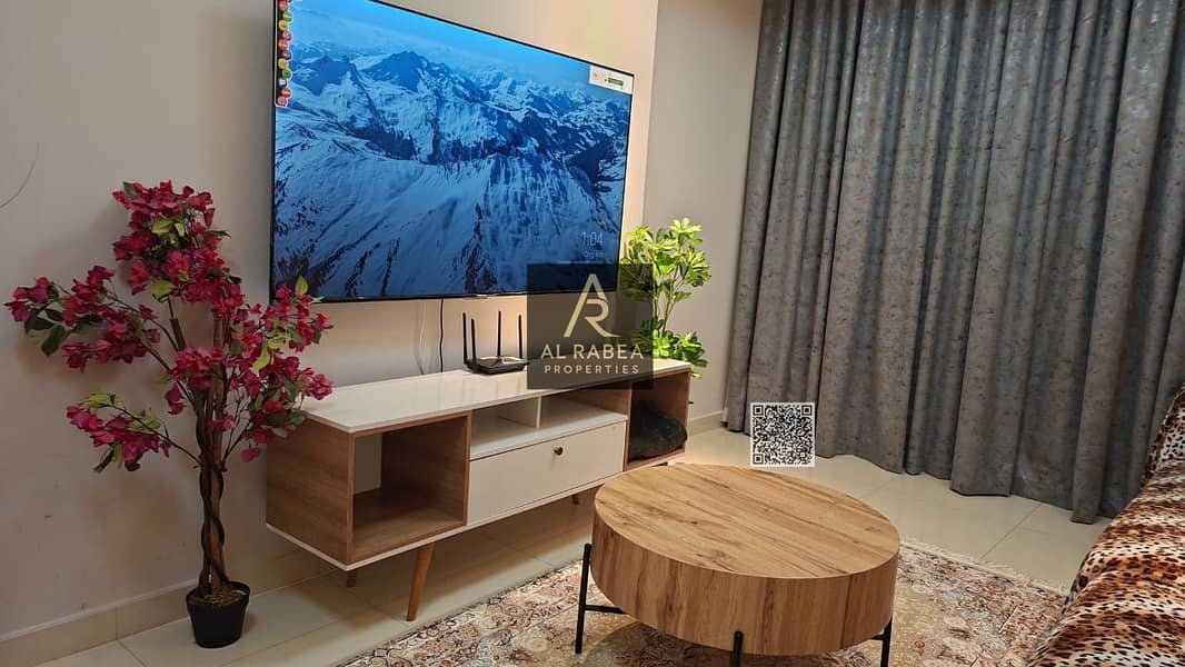 Furnished room and living room with gym, swimming pool, garden, parking, central air conditioning, wall closets, strategic location close to all servi