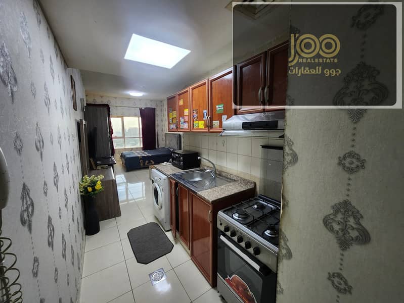 Furnished studio for rent in Orient Towers, Liwara Al Bustan, rent AED 3,000, deposit AED 500. Joo Real Estate –