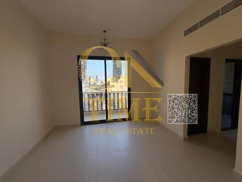 Great opportunity: 1-bedroom hall, 2 bathrooms, first tenant, annual rent, balcony, spacious, excellent finishes, direct access to Mohammed Bin Zayed