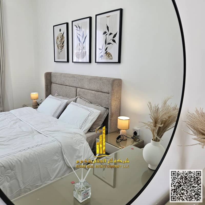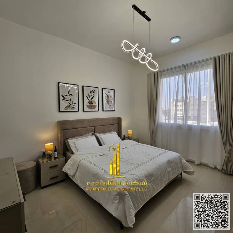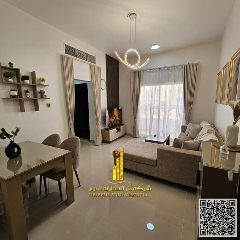 Luxurious and beautiful furnished one-bedroom apartment for monthly rent in Ajman - Al Jurf 2 - near Al Aqsa School Includes bills and internet
