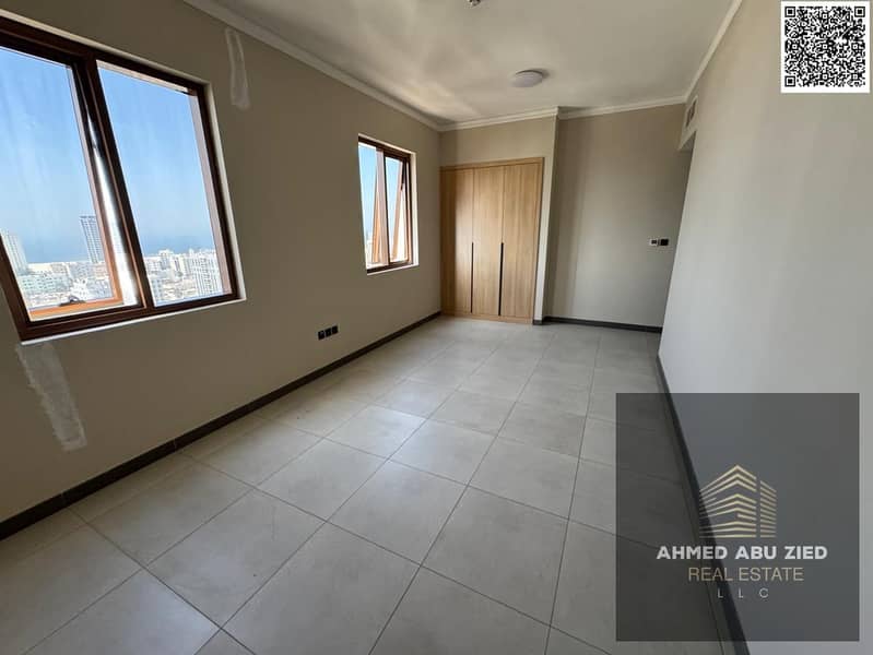 Luxury 3BR hall apt near Ajman Corniche & Gold Souk, 3 balconies, maid & laundry rooms, storage, built-in wardrobes, free parking & gas, 1 month free