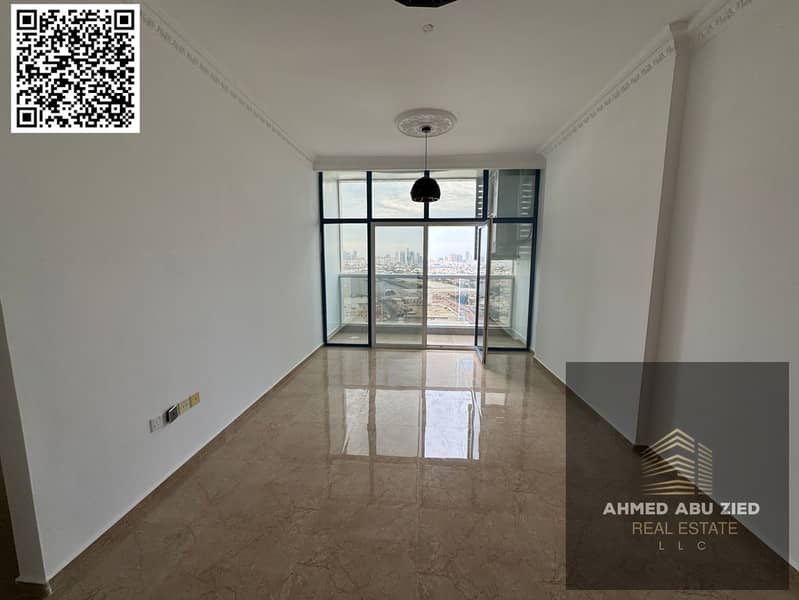 Luxury and spacious one-bedroom apartment with a living room, two bathrooms, central air conditioning, and a balcony with an excellent sea view. Super