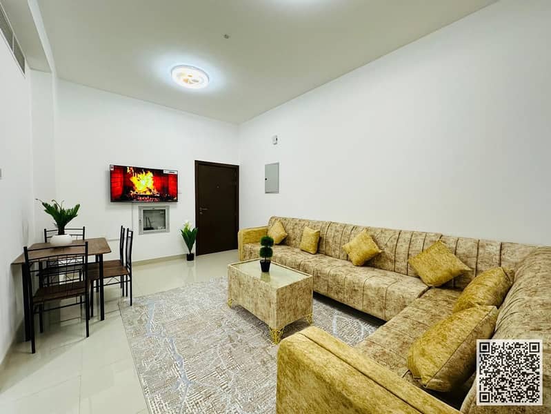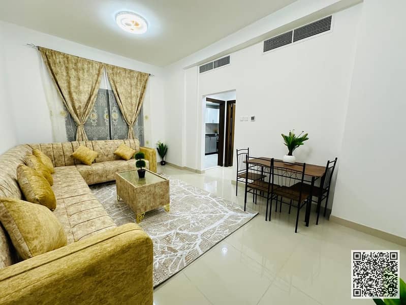 Luxury Apartment One bedroom and living room with a balcony overlooking Ajman Corniche, available for monthly rent. Fully furnished, at a special pr