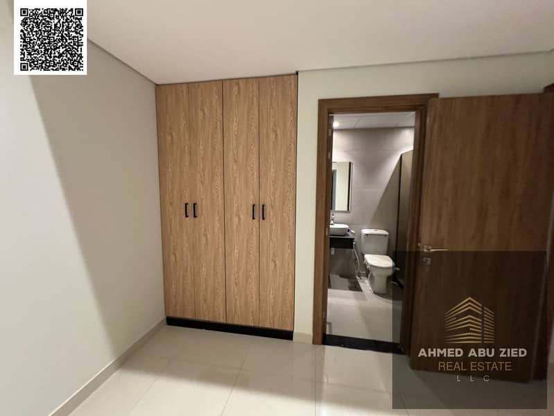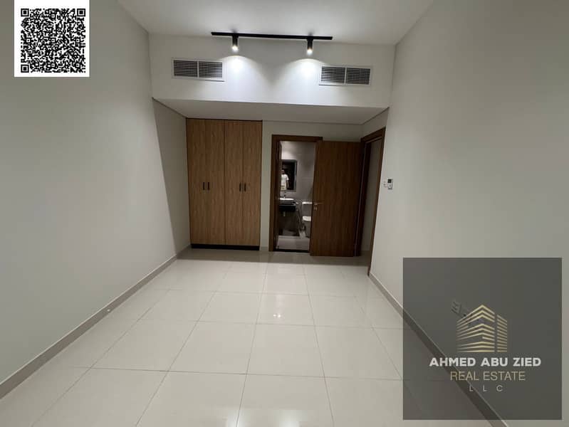 Luxury brand-new apartment for rent in Ajman, featuring 2 bedrooms (including a master), a spacious living room, equipped kitchen, 2 bathrooms, and fu