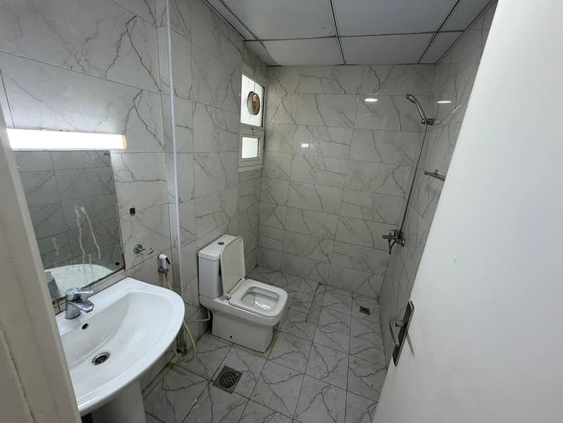 One-bedroom apartment for annual rent in Al Muwaihat 3, Ajman. Spacious, large balcony, excellent layout, new building, central air conditioning,