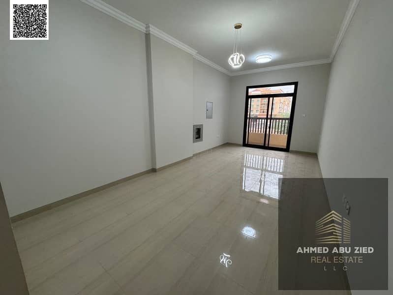 One-bedroom apartment in a new building, first occupancy, with two bathrooms, a distinctive balcony with an open view, very spacious, central air cond