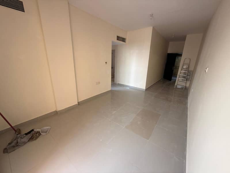 One bedroom, living room, and balcony with an open view available for annual rent on the main road in Al Jurf 2, Ajman. Excellent location.