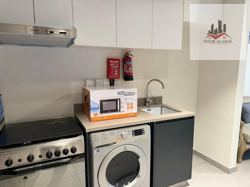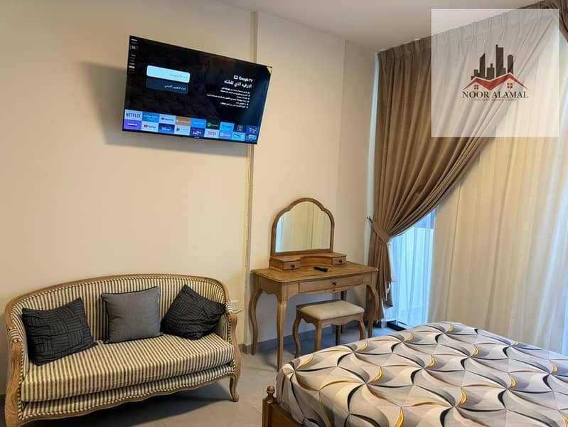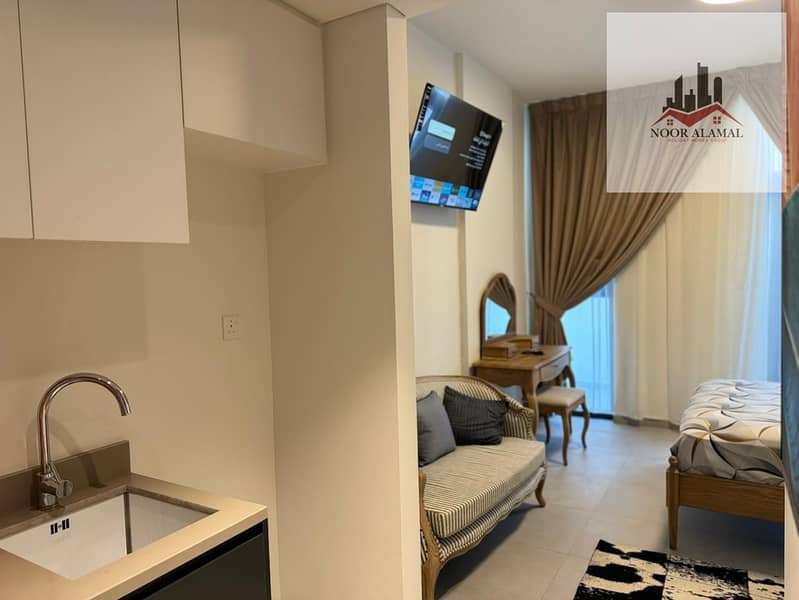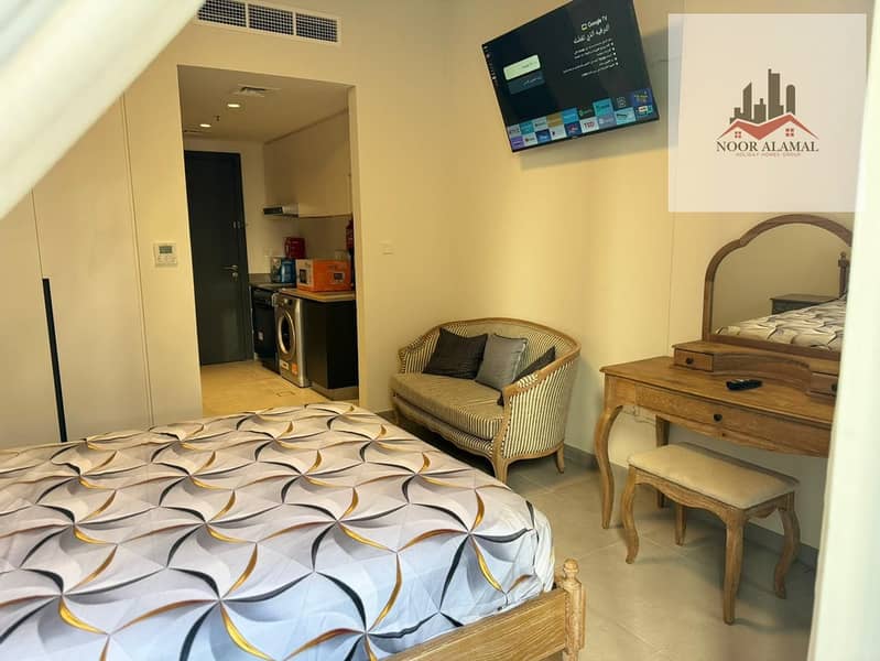 Sharjah - Aljada - Super Deluxe Studio Apartment with a large area, fully equipped kitchen, and bathroom