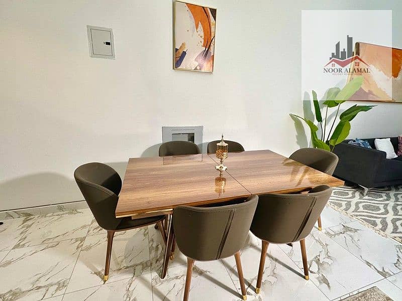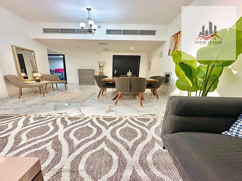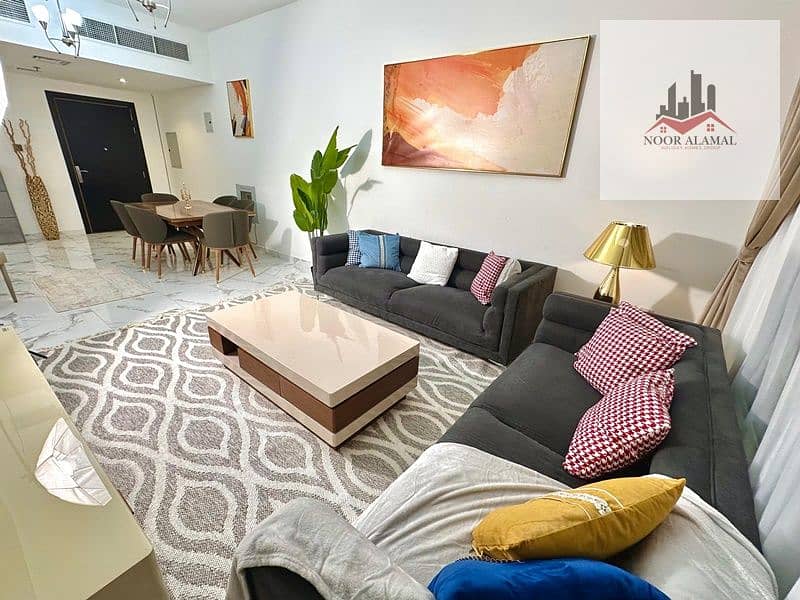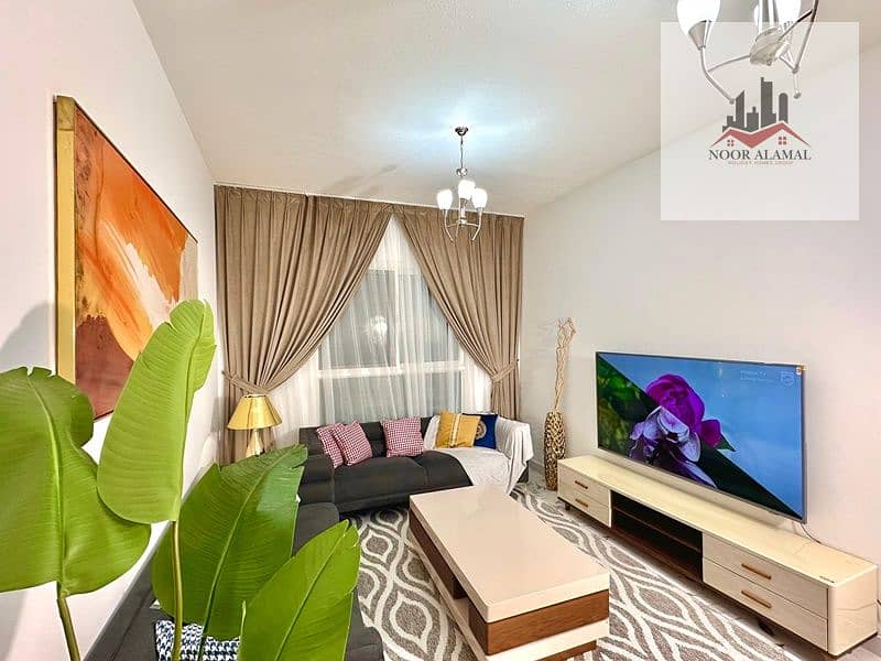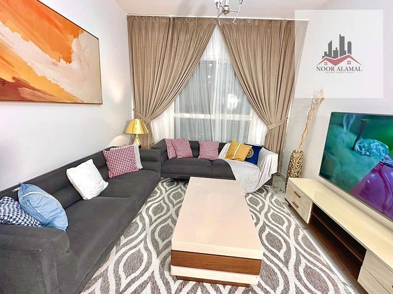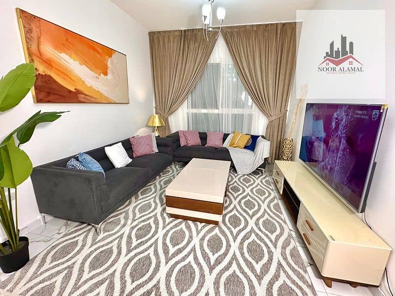 Sharjah, Muwaileh: One bedroom, living room, kitchen, and two bathrooms. Second occupancy. Hotel-style furnishings. Price: 4200 AED including internet