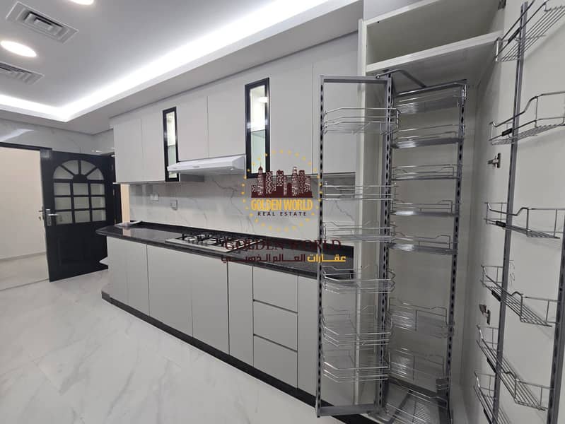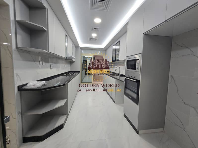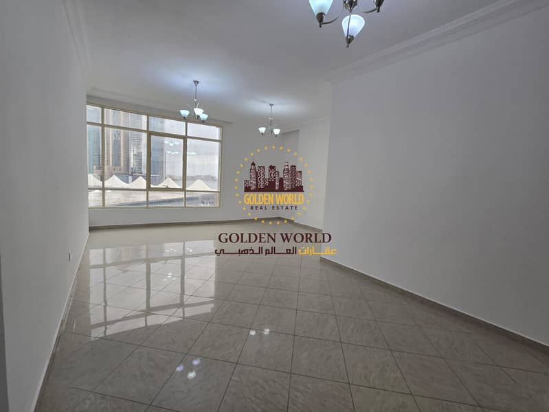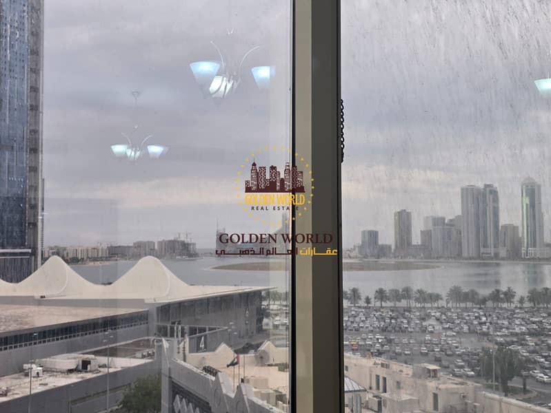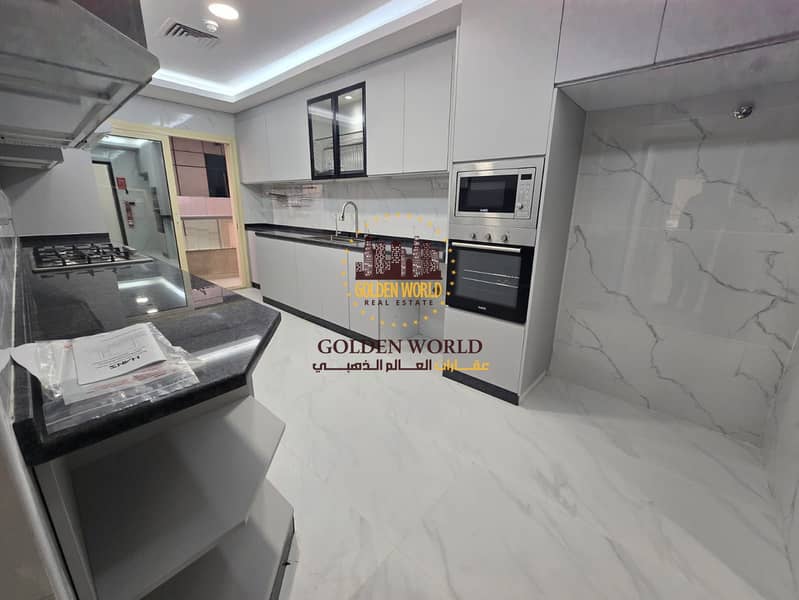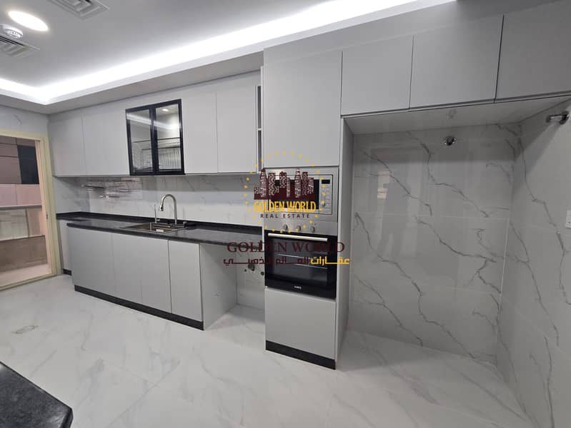 Spacious three bedroom apartment with sea view in Al Taawun Sharjah featuring master room four bathrooms modern kitchen balcony maid room laundry and