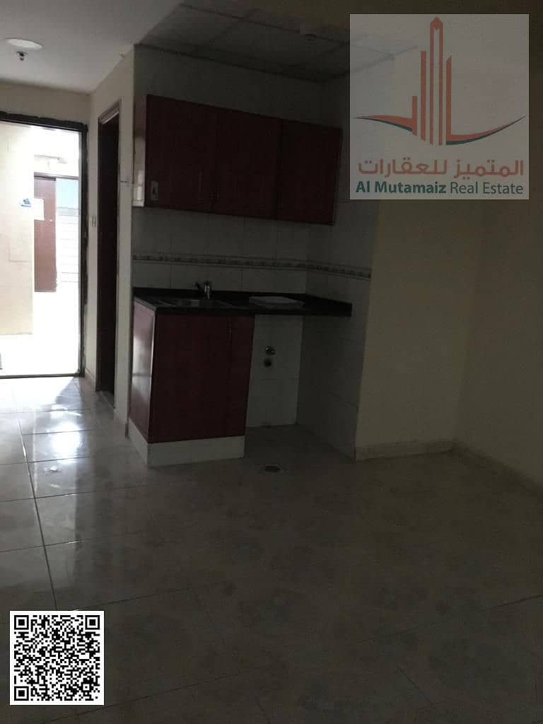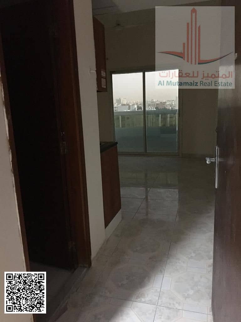 Studio apartment with balcony for annual rent in Ajman, Al Mazroui Building, Al Nuaimiya 2. Rent is AED 18,000, payable in installments