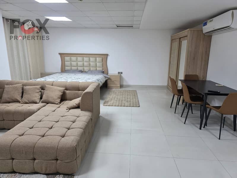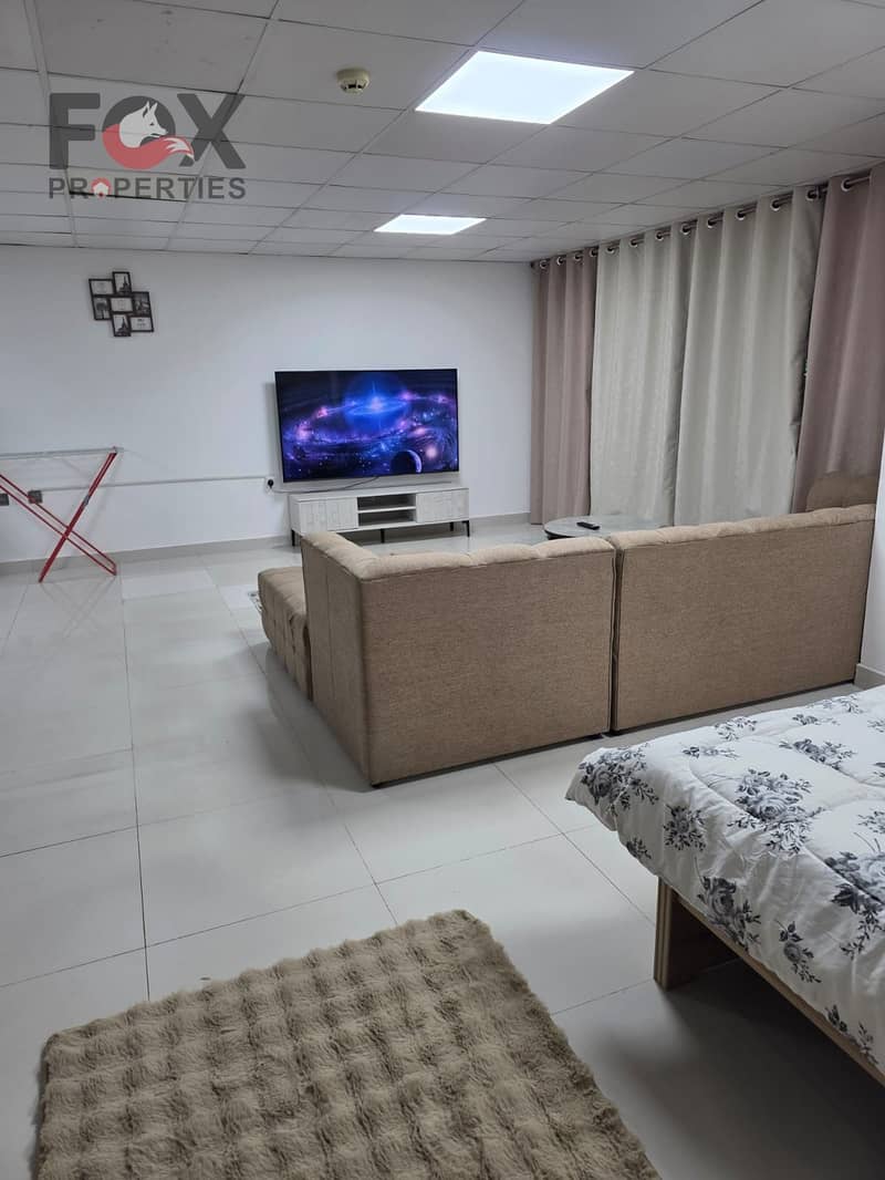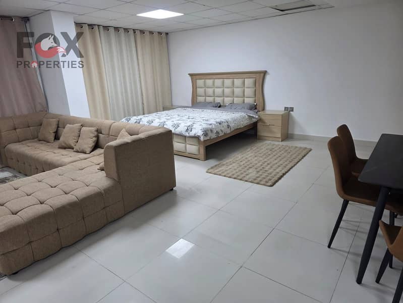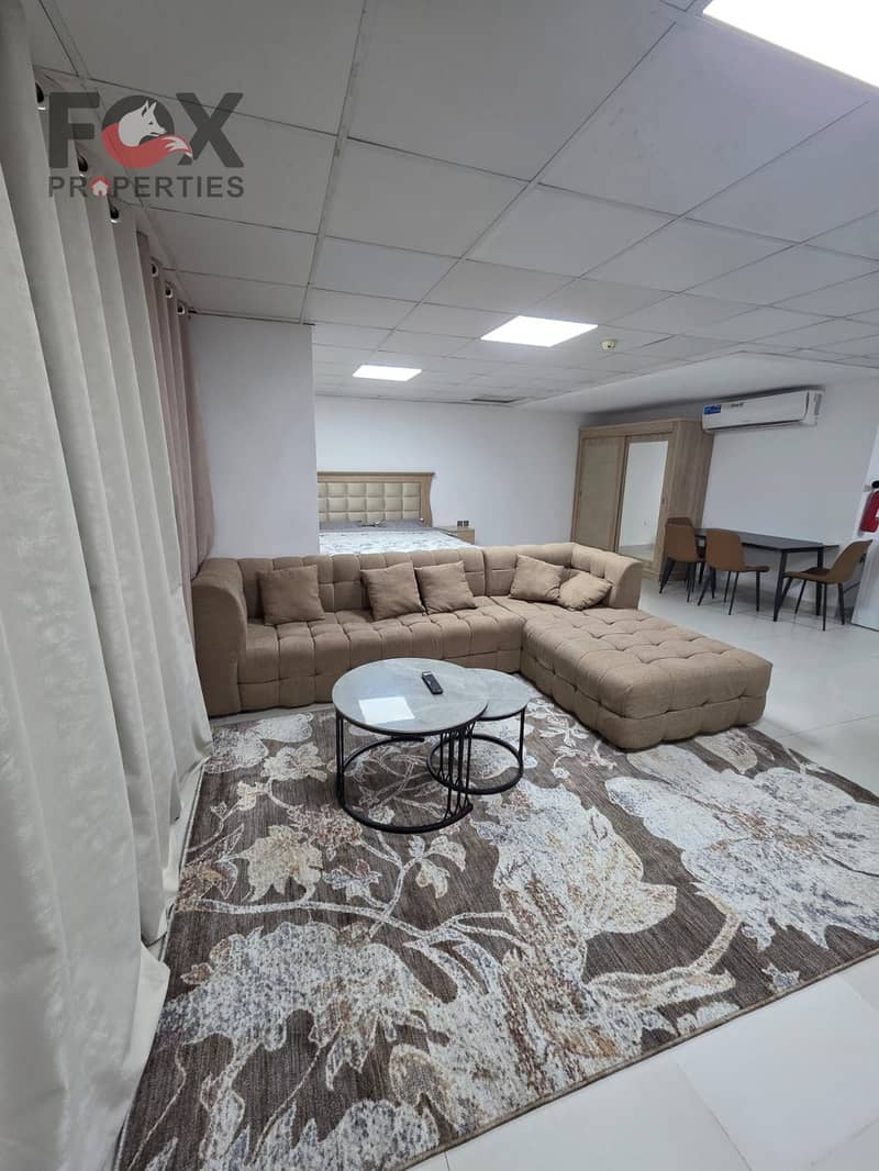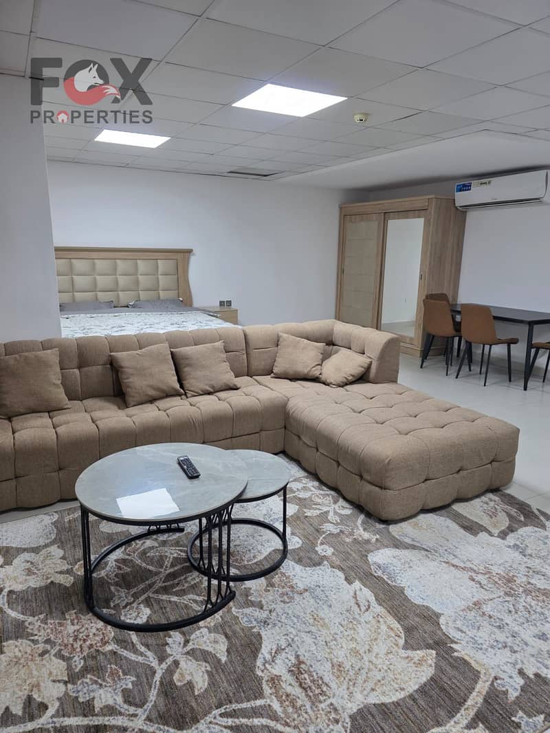The studio is fully furnished with new furniture, located in a quiet building with a prime location, close to the Saudi German Hospital and all essential services.