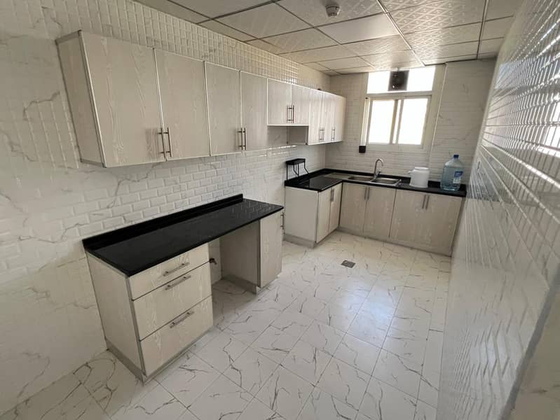 Two-bedroom apartment with a living room for annual rent in Al Jurf 3 - Ajman, 2 bathrooms, balcony, central air conditioning, new building, spacious