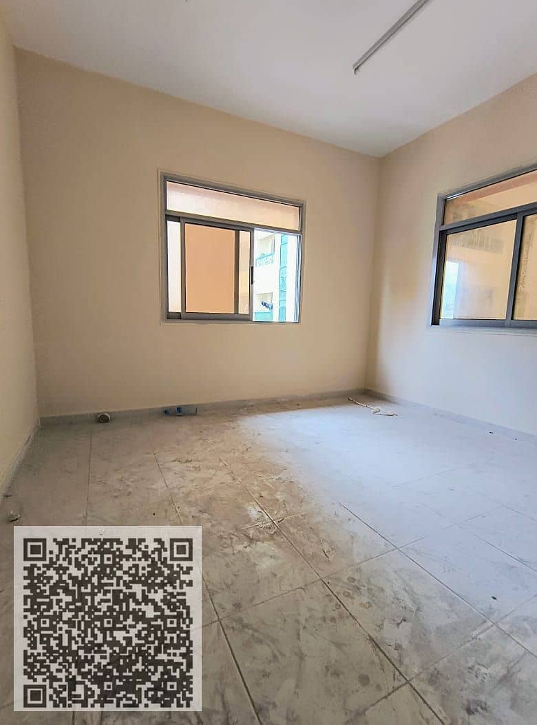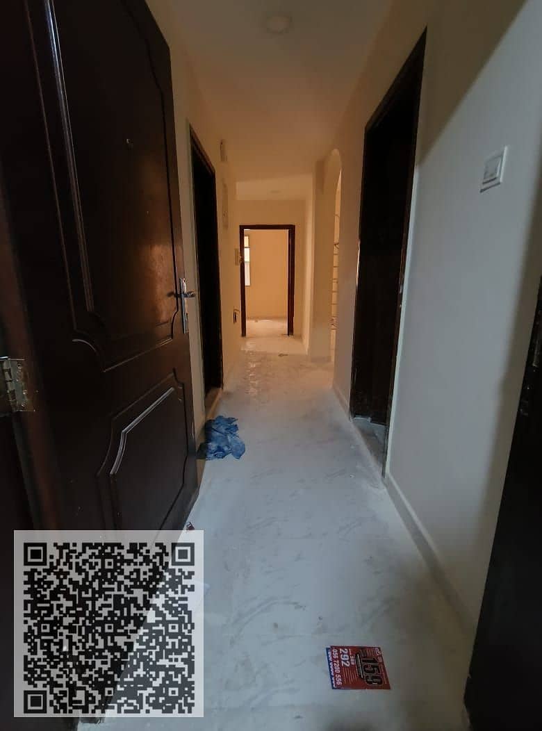 Two-bedroom apartment with a living room for annual rent in Al Rashidiya 1, Ajman, near the port road, with an open view.