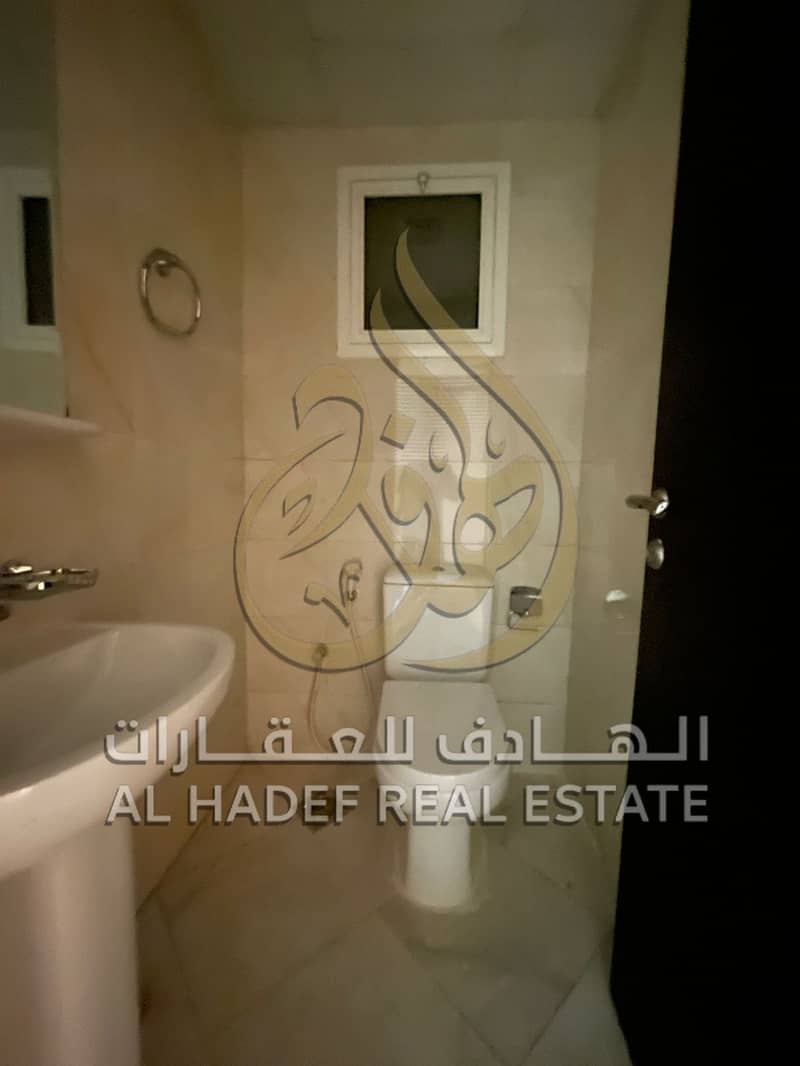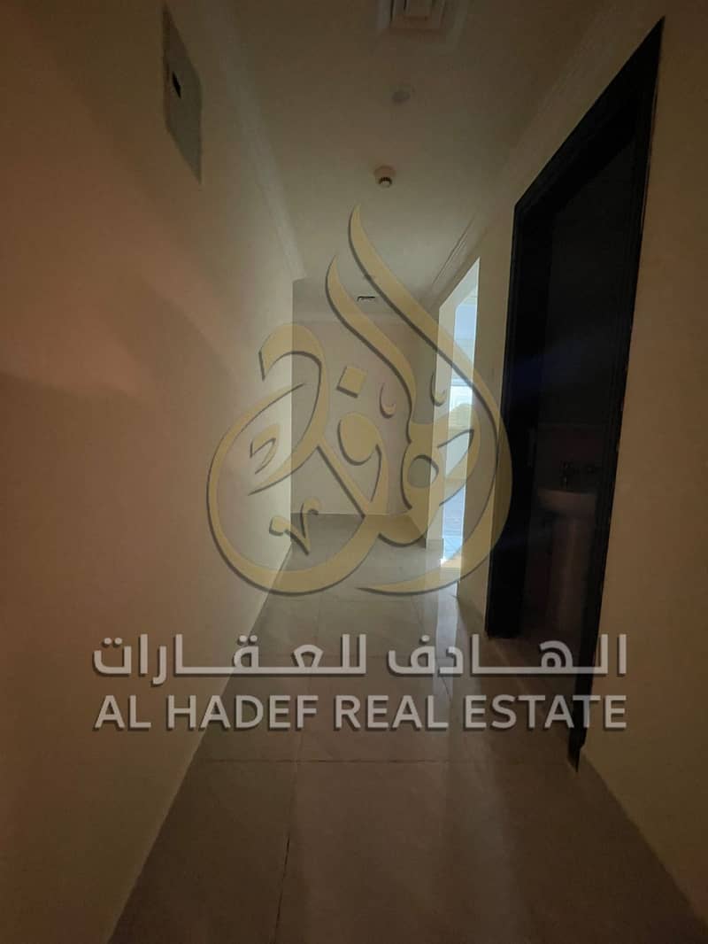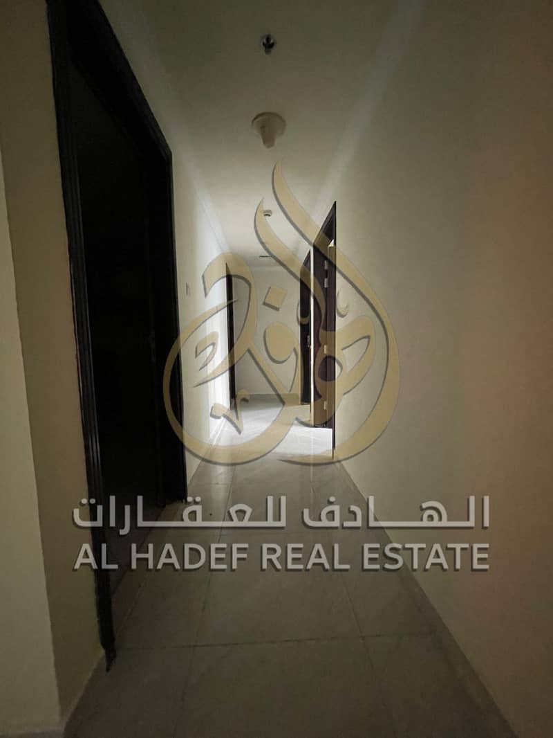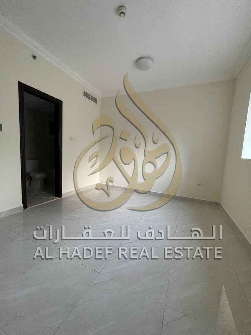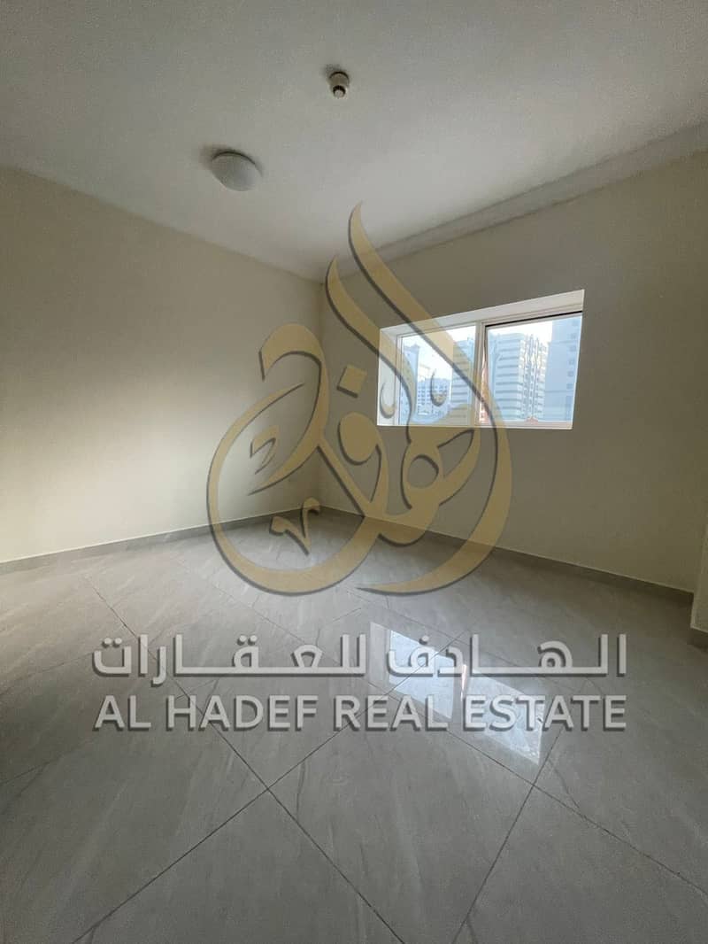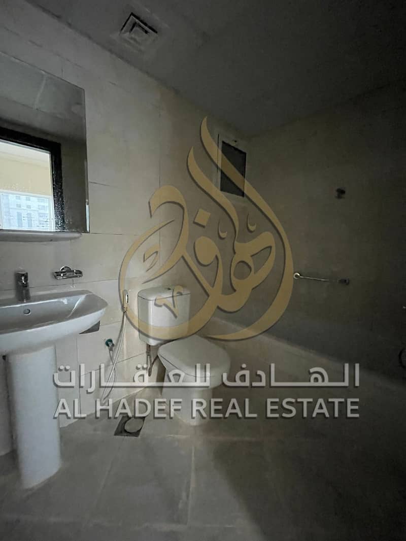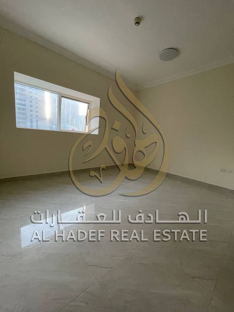 Two-bedroom apartment with a living room for rent in Al Majaz 2, featuring spacious areas, a balcony with a distinctive view, and free parking.
